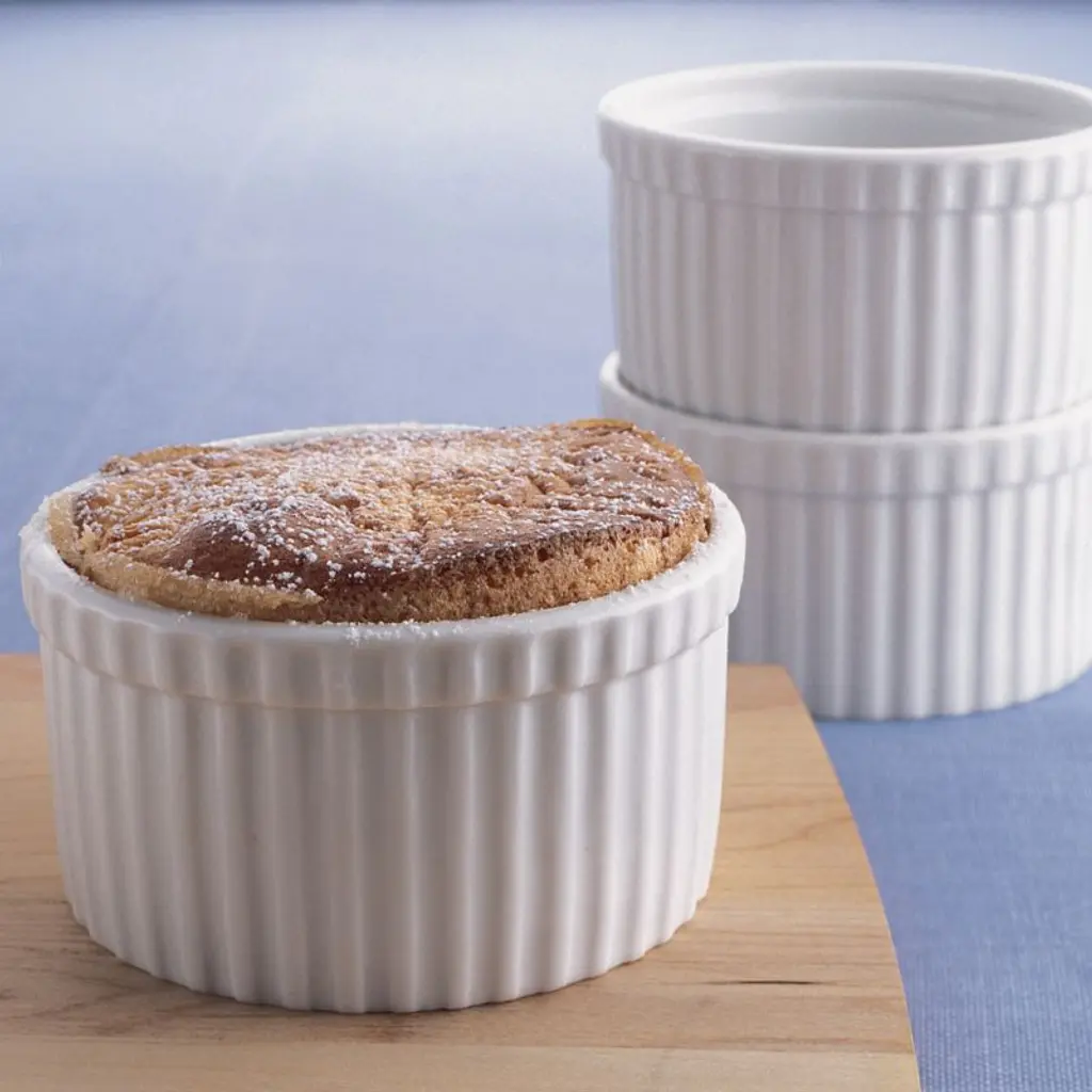 Durable, ribbed white porcelain adds classic style to a variety of foods. Ramekins can be used to bake individual desserts, serve snacks or pre-measure cooking ingredientsthe uses are endless.