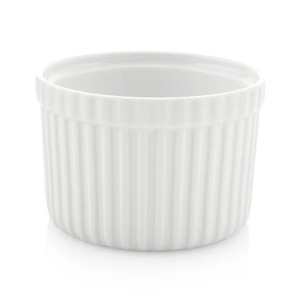 Durable, ribbed white porcelain adds classic style to a variety of foods. Ramekins can be used to bake individual desserts, serve snacks or pre-measure cooking ingredientsthe uses are endless.