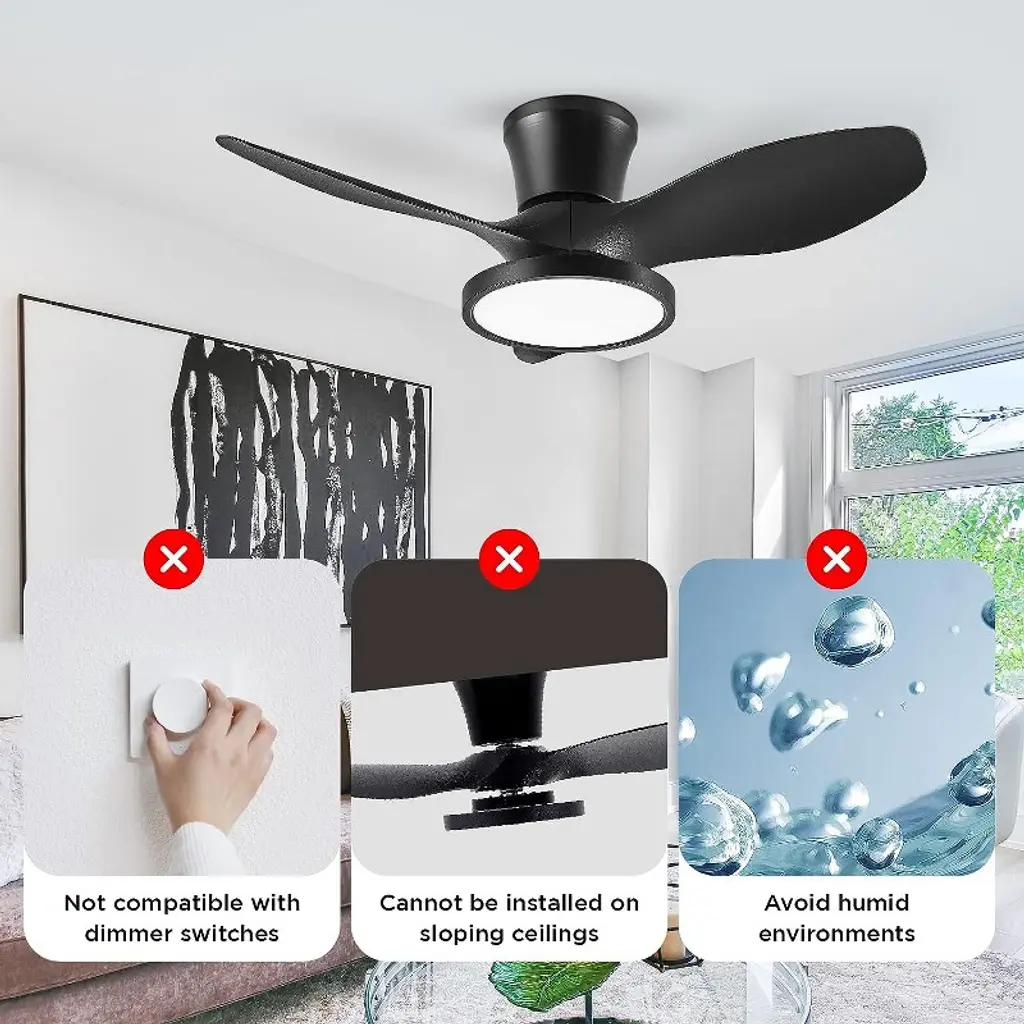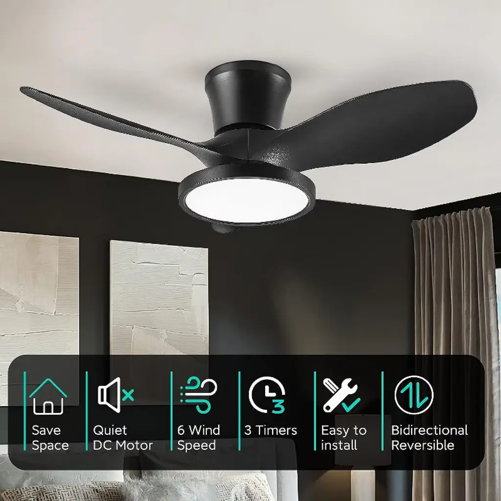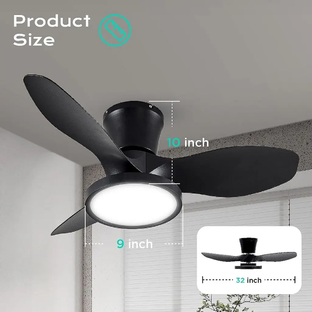 Taloya 32 In. Indoor Black Small Ceiling Fan With Light And Remote And Quiet Reversible Dc Motor, 3 Cct Light Kit
