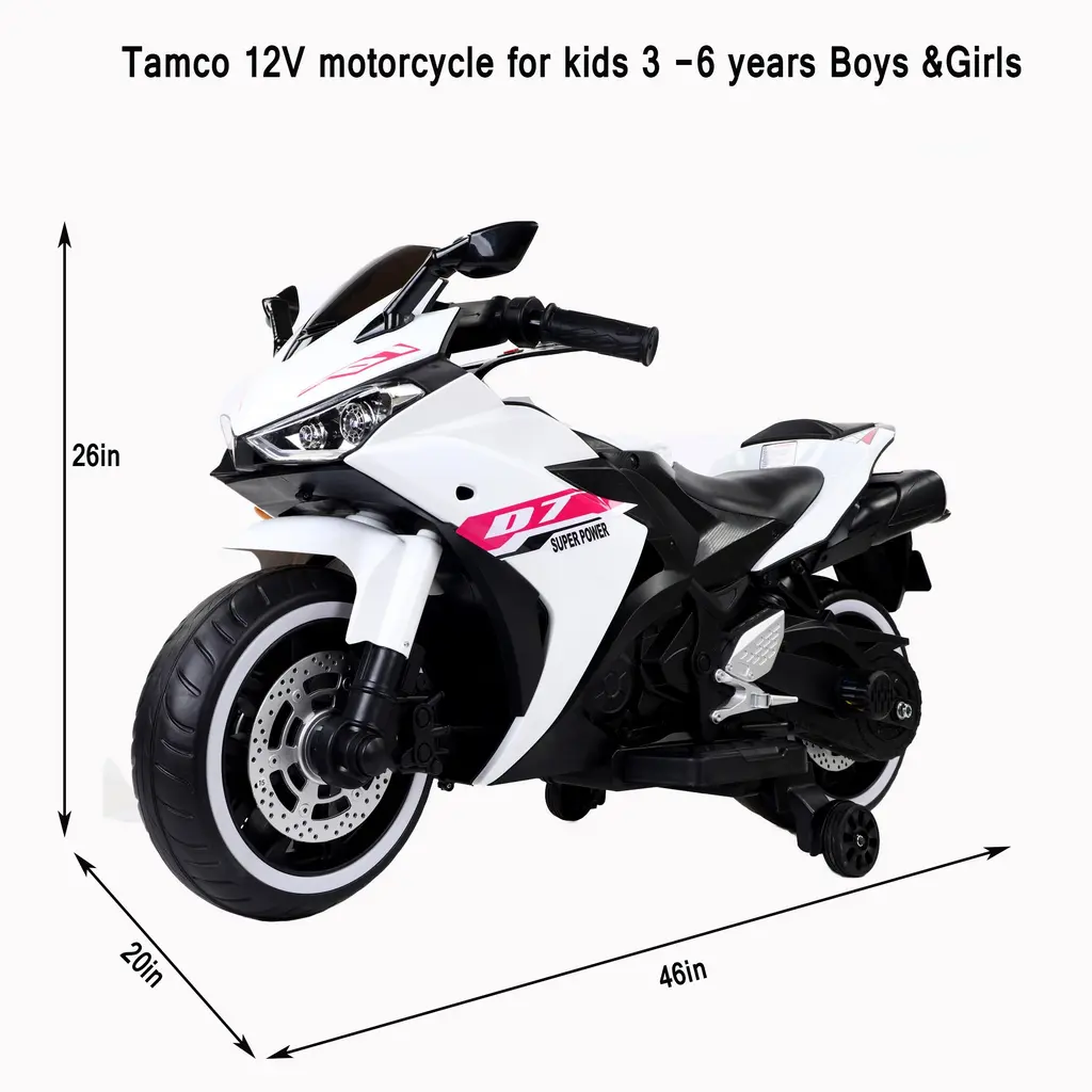 Tamco Kids Motorcycle 12v Motorcycle For Kids 3 4 5 6 Years Boys Girls Red - White