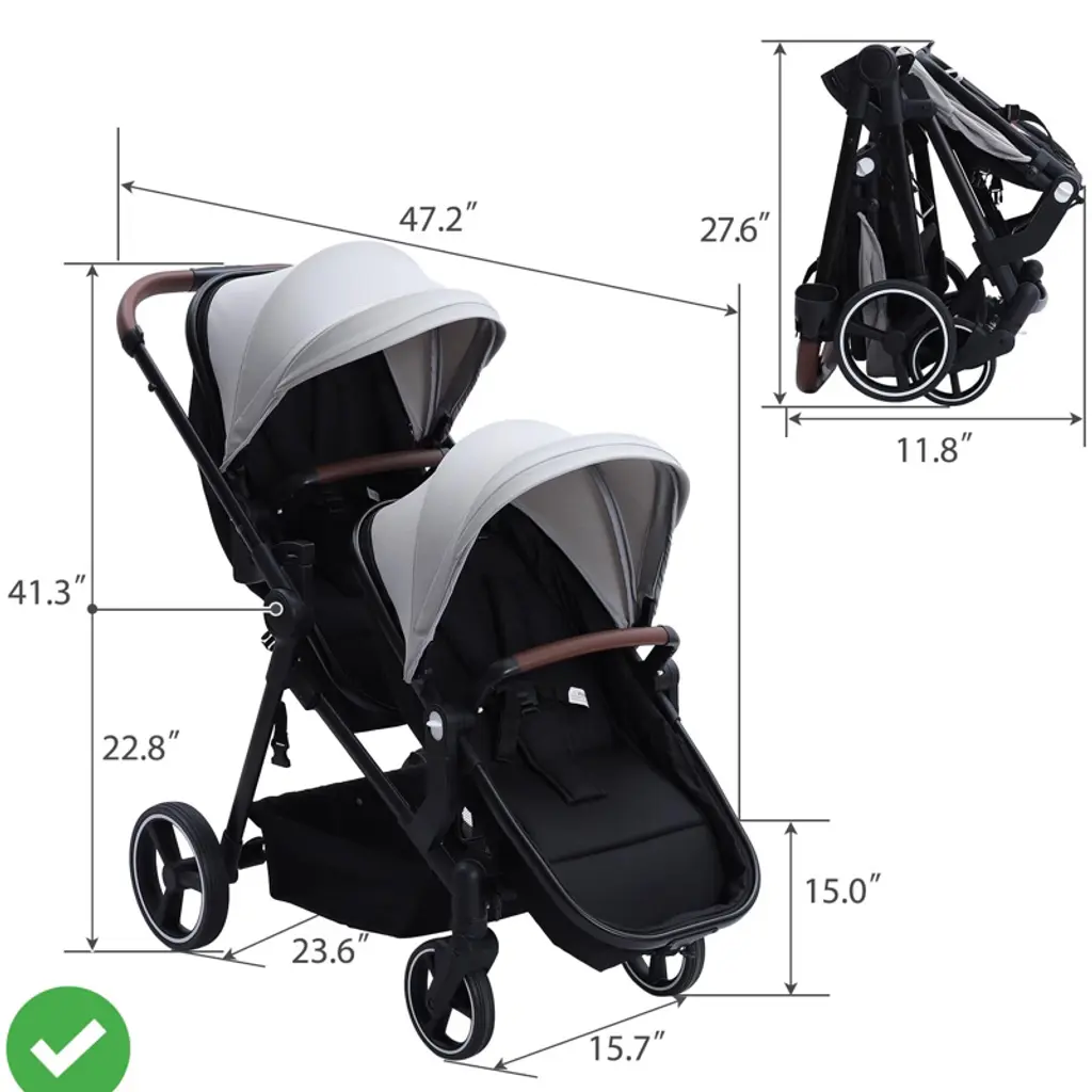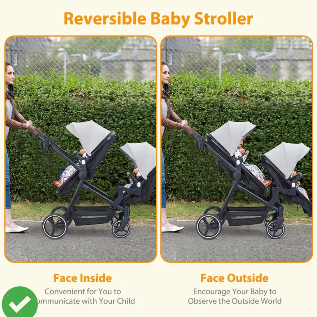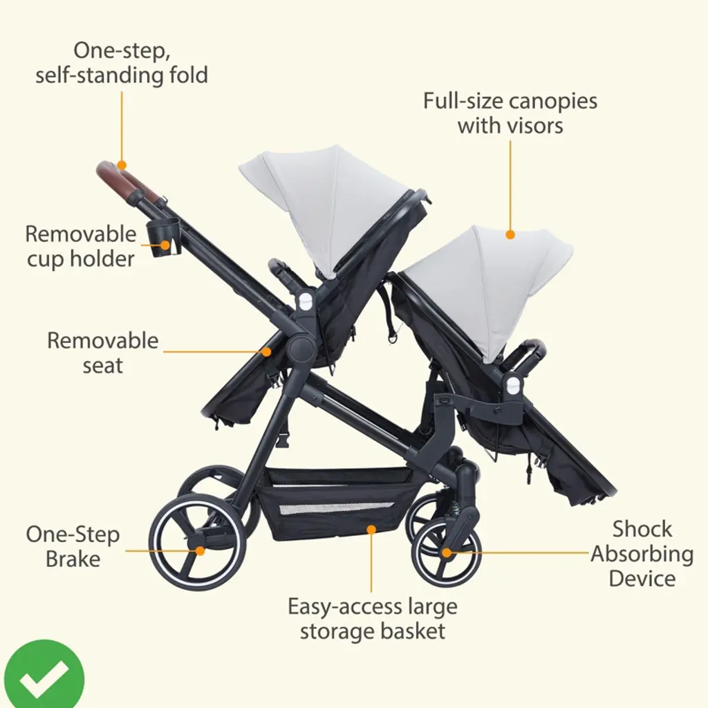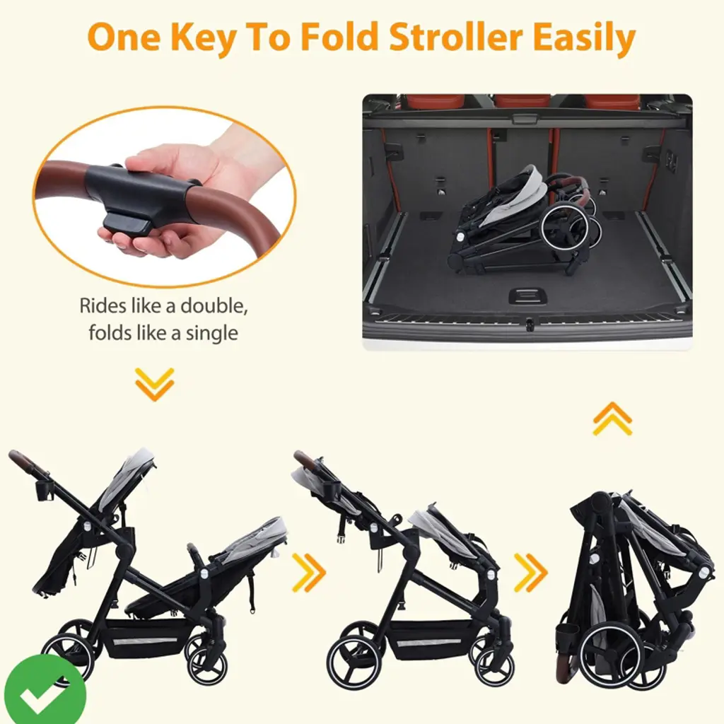 Tandem Double Stroller Newborn And Toddler, Foldable Twin Stroller With Reversible Seat