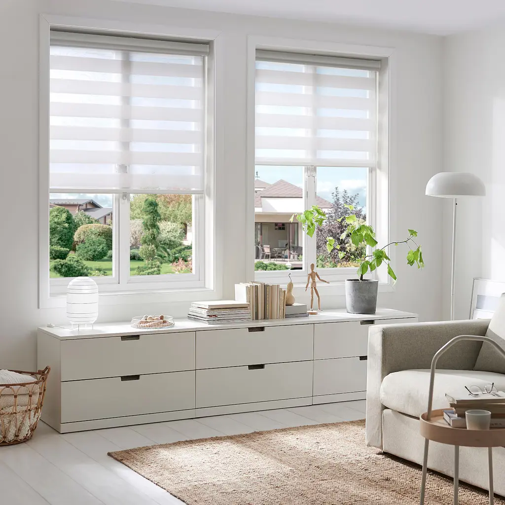 TANDLUNDFLY Double layered blind 48x98 ½ ". With this double roller blind, you can easily adjust the light and transparency level to quickly switch between sheer and private mode. You can stop the roller blind at any height since it is pushed up manually. Wall/ceiling screws not included.