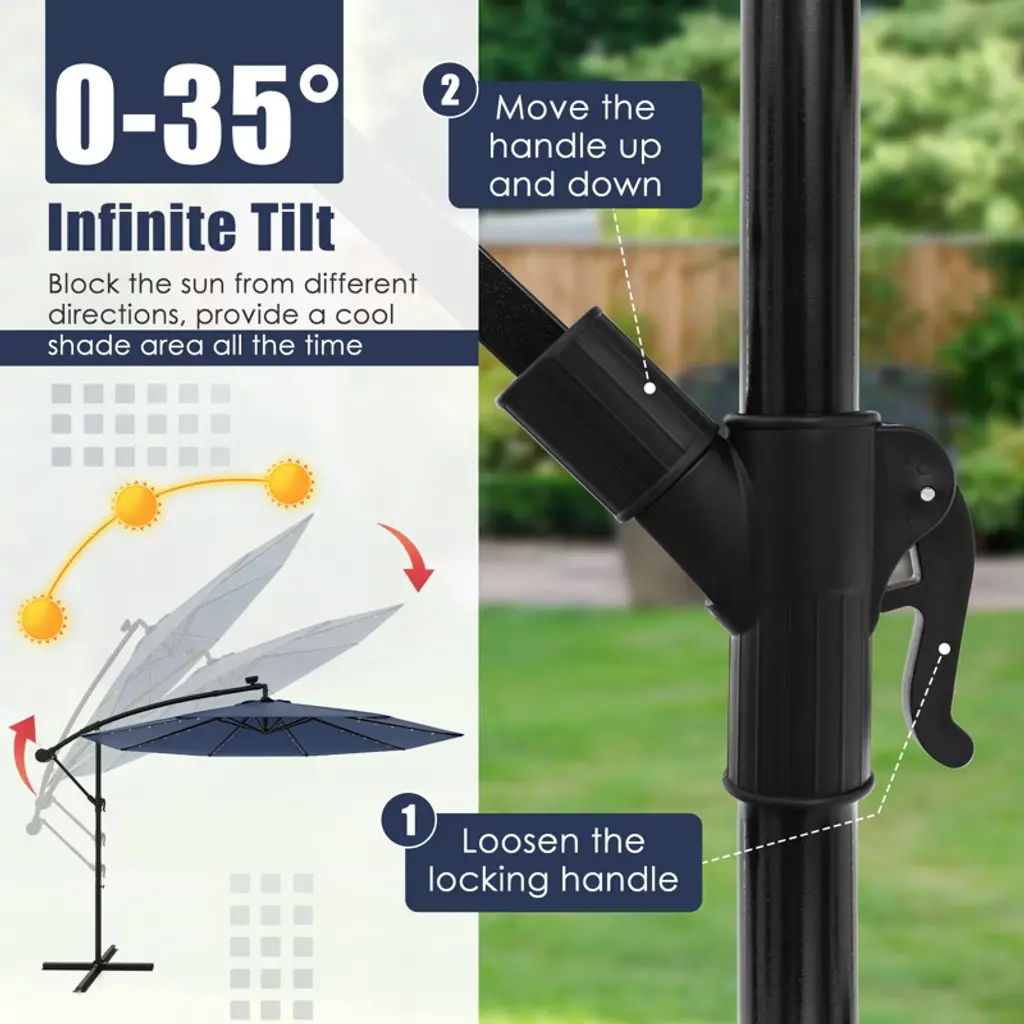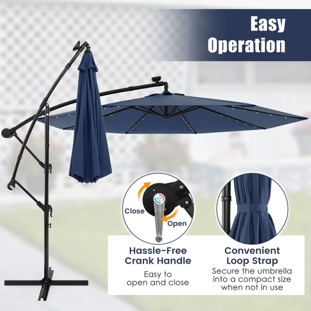 Tangkula 10 Ft Solar Led 40 Lights Offset Umbrella Crank Cross Base Patio Navy