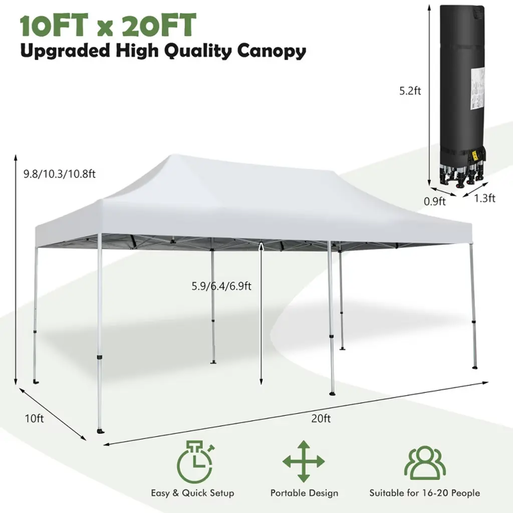 Tangkula 10 X 20ft Patio Pop-up Folding Canopy Tent Upf 50+ One-button Setup Instant Sun Shelter White