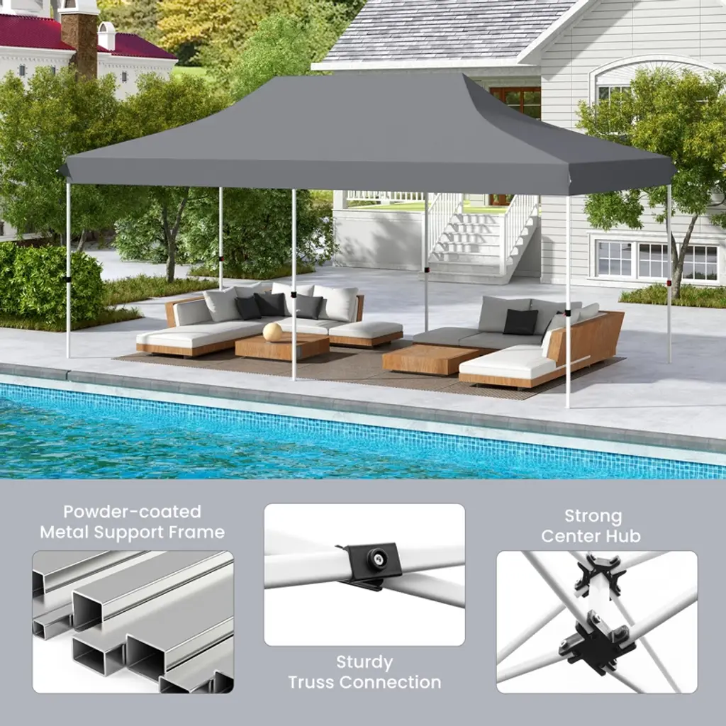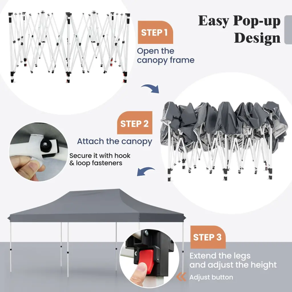 Tangkula 10 X 20ft Pop-up Canopy Tent Folding Instant Sun Shelter W/ Adjustable Heights Carrying Bag 12 Stakes & 6 Ropes Outdoor Commercial Tent Grey