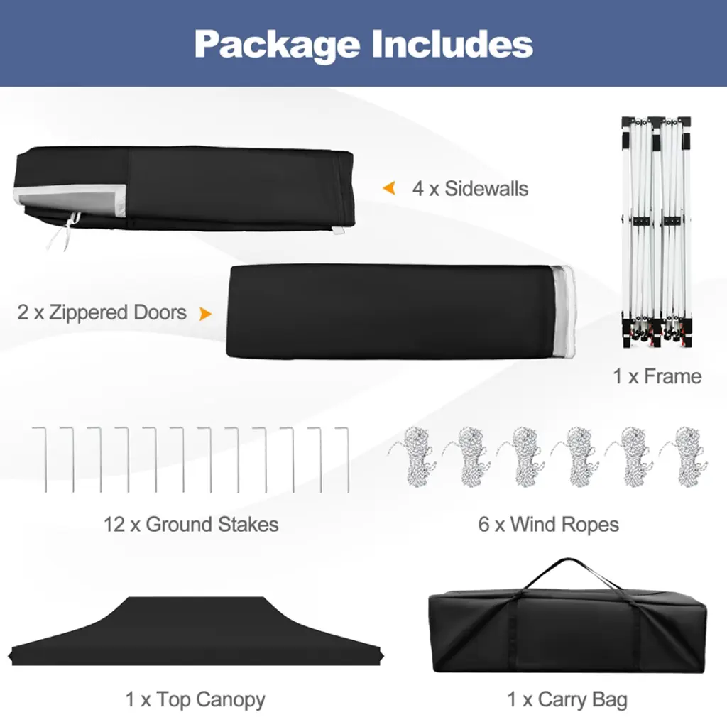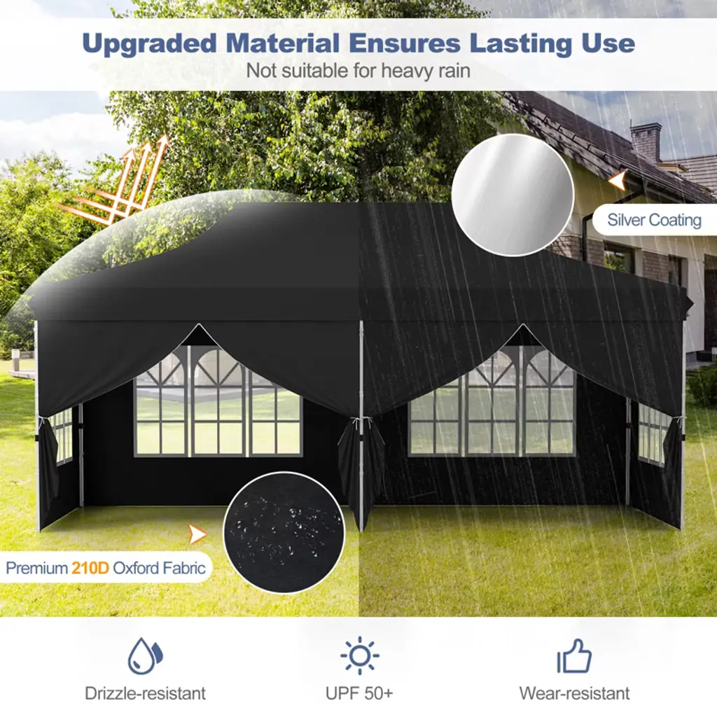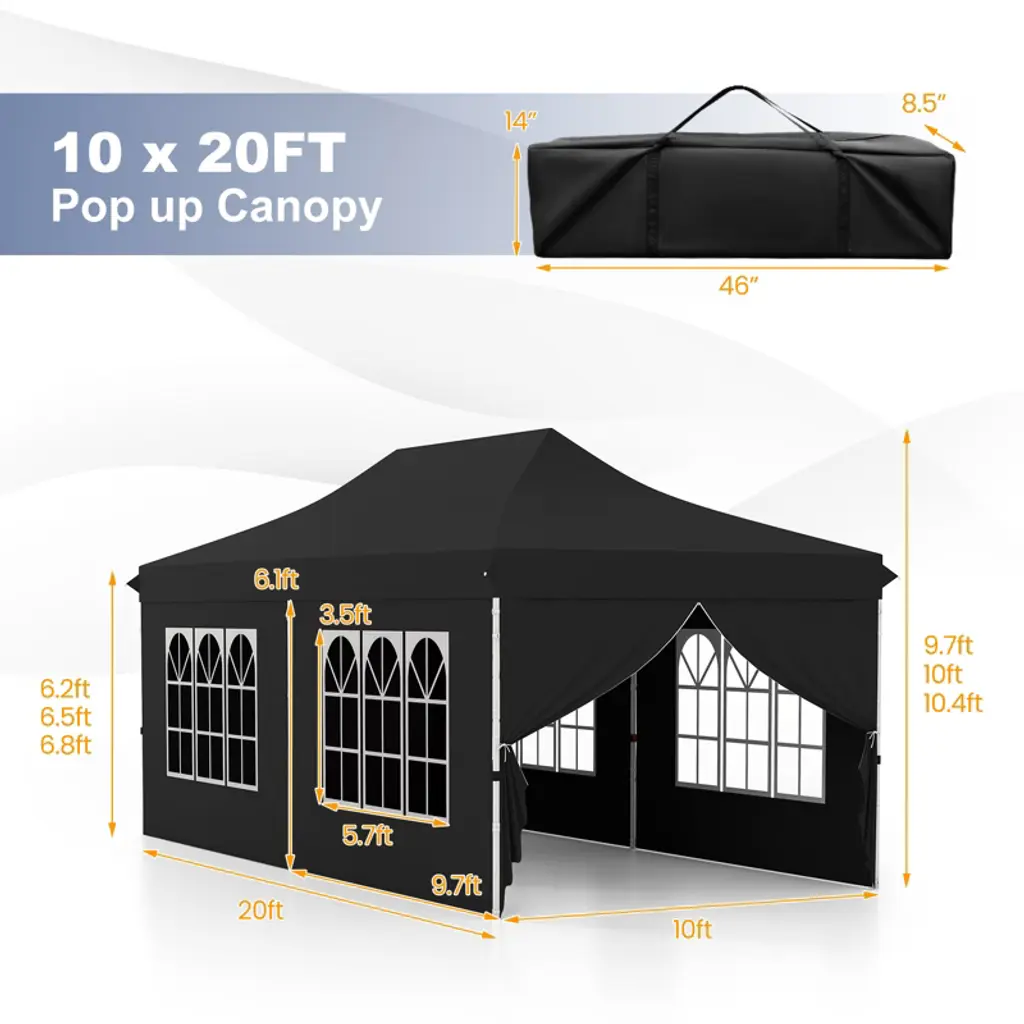 Tangkula 10 X 20ft Pop Up Canopy With 6 Sidewalls Outdoor Canopy Tent With Zippered Entrances Windows Black