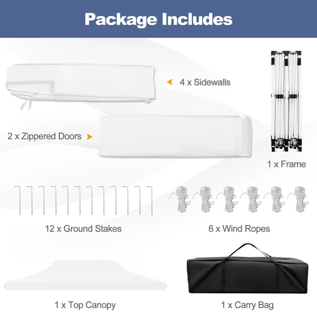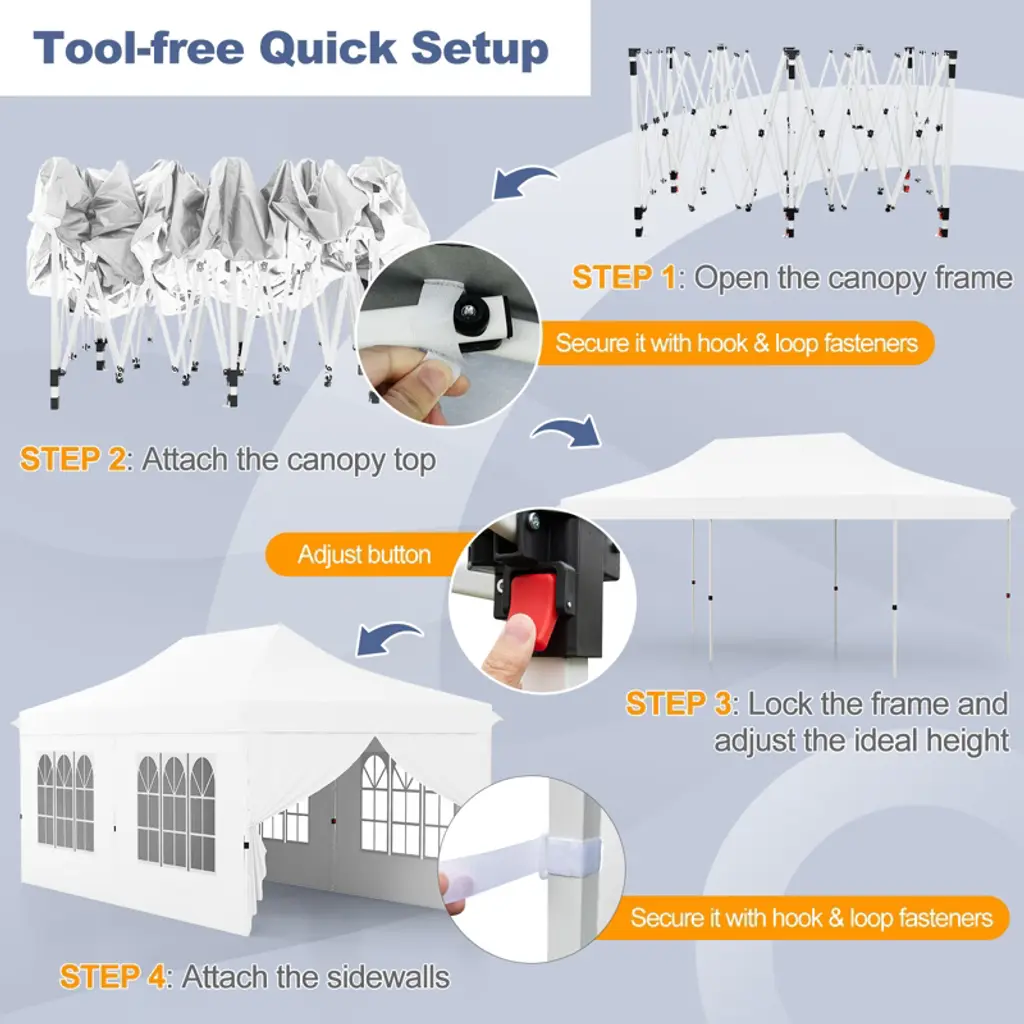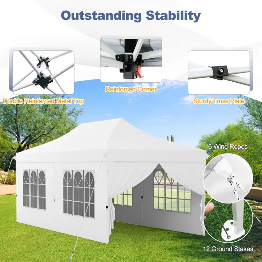 Tangkula 10 X 20ft Pop Up Canopy With 6 Sidewalls Outdoor Canopy Tent With Zippered Entrances Windows White