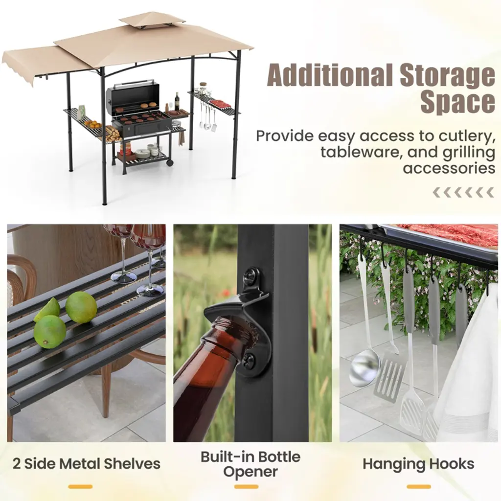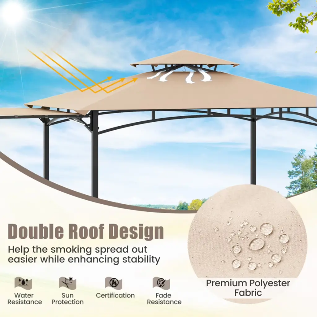 Tangkula 11 X 5 Ft Grill Bbq Gazebo W/ Side Awning Double-tiered Top 2 Side Shelves Beige