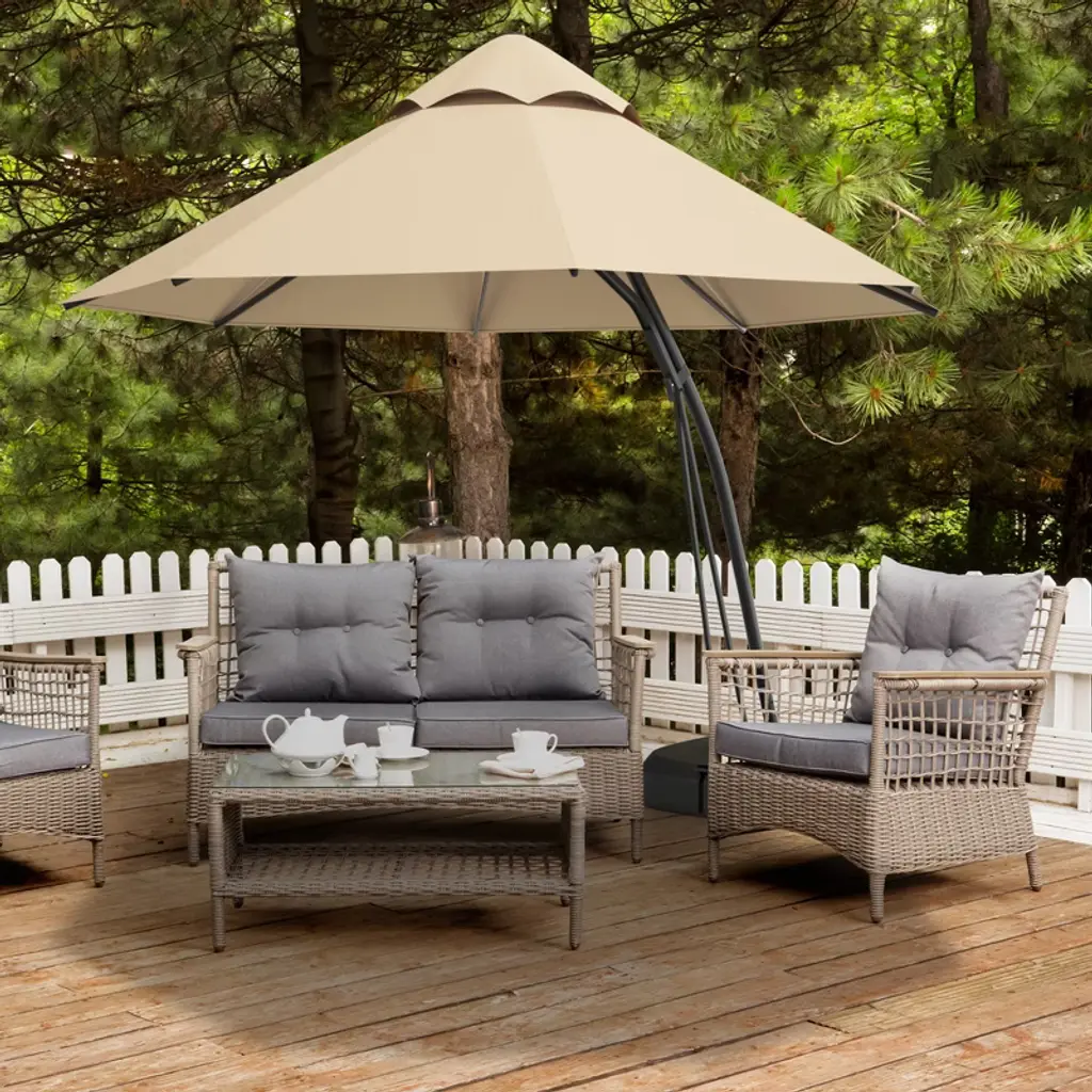 Tangkula 11ft Patio Cantilever Hand Push Offset Hanging Umbrella W/ Wheels Base Beige