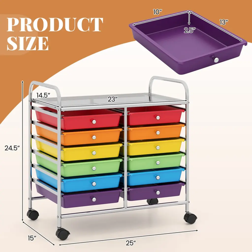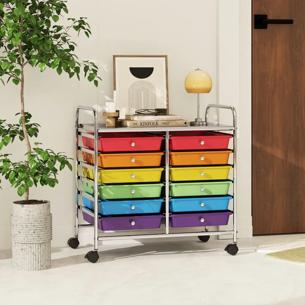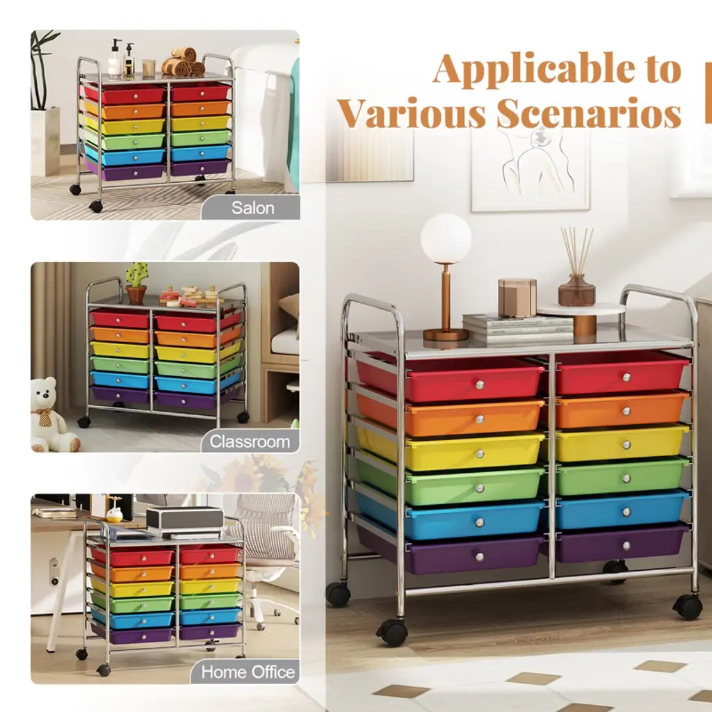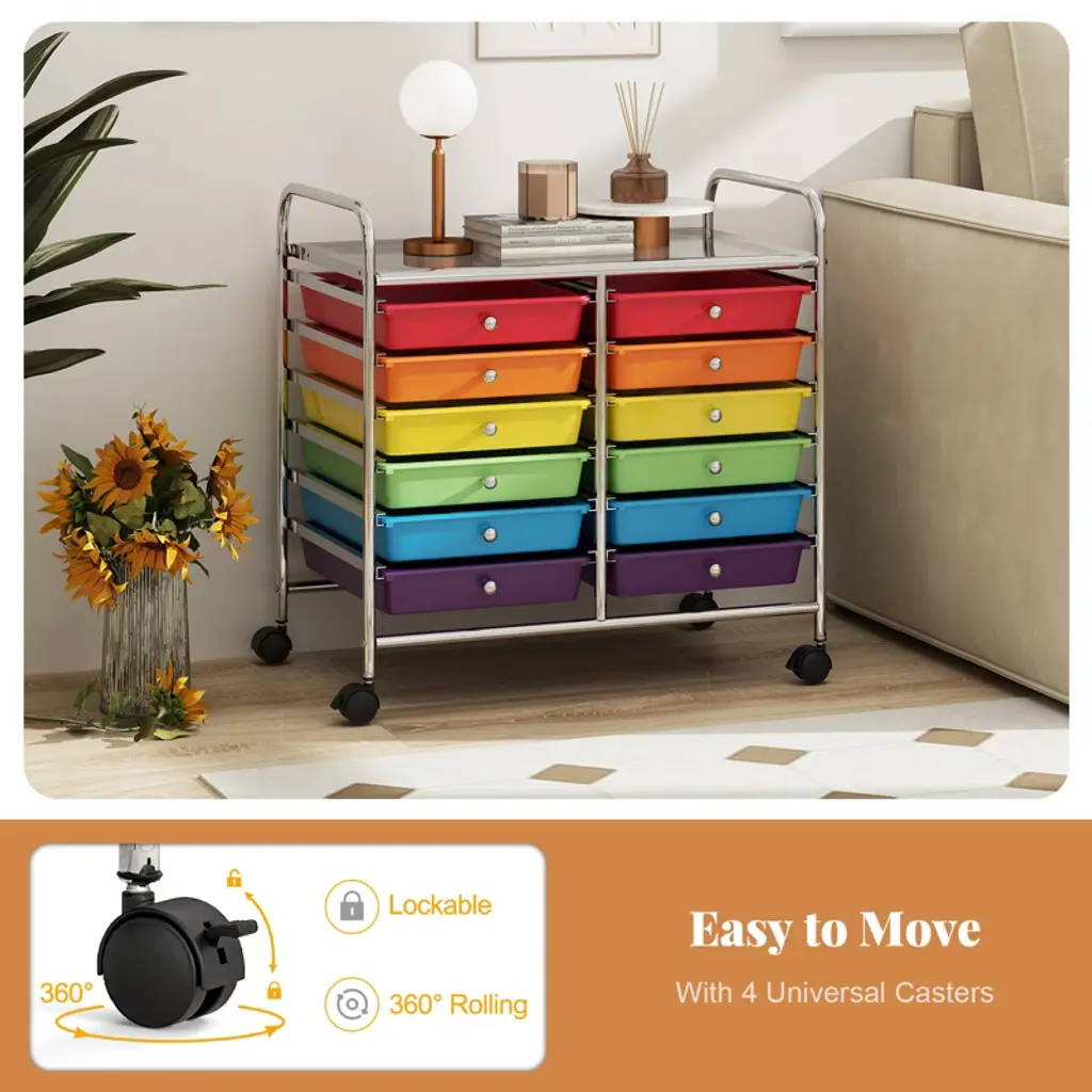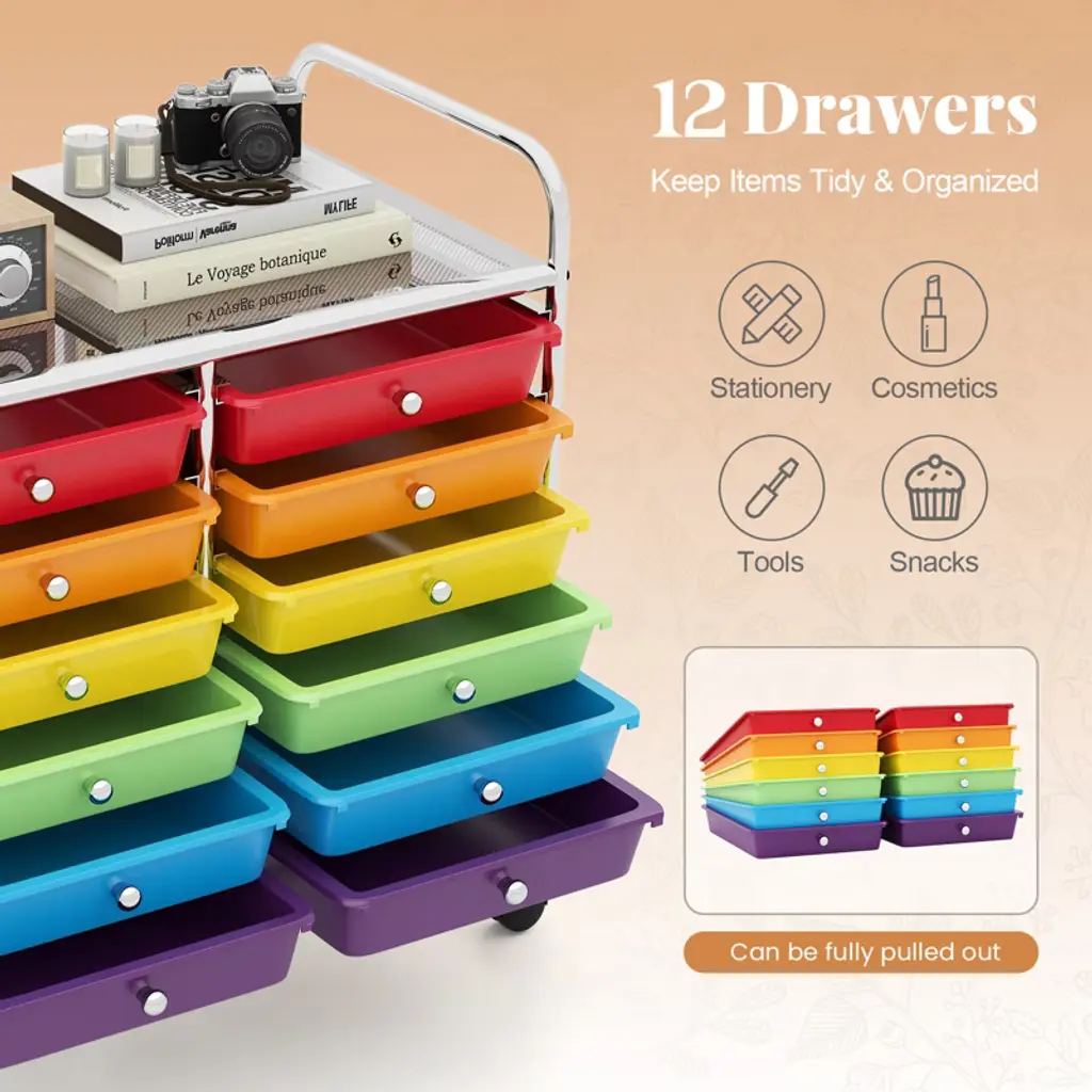 Tangkula 12-drawer Rolling Storage Cart Utility Cart With Lockable Casters Multicolor