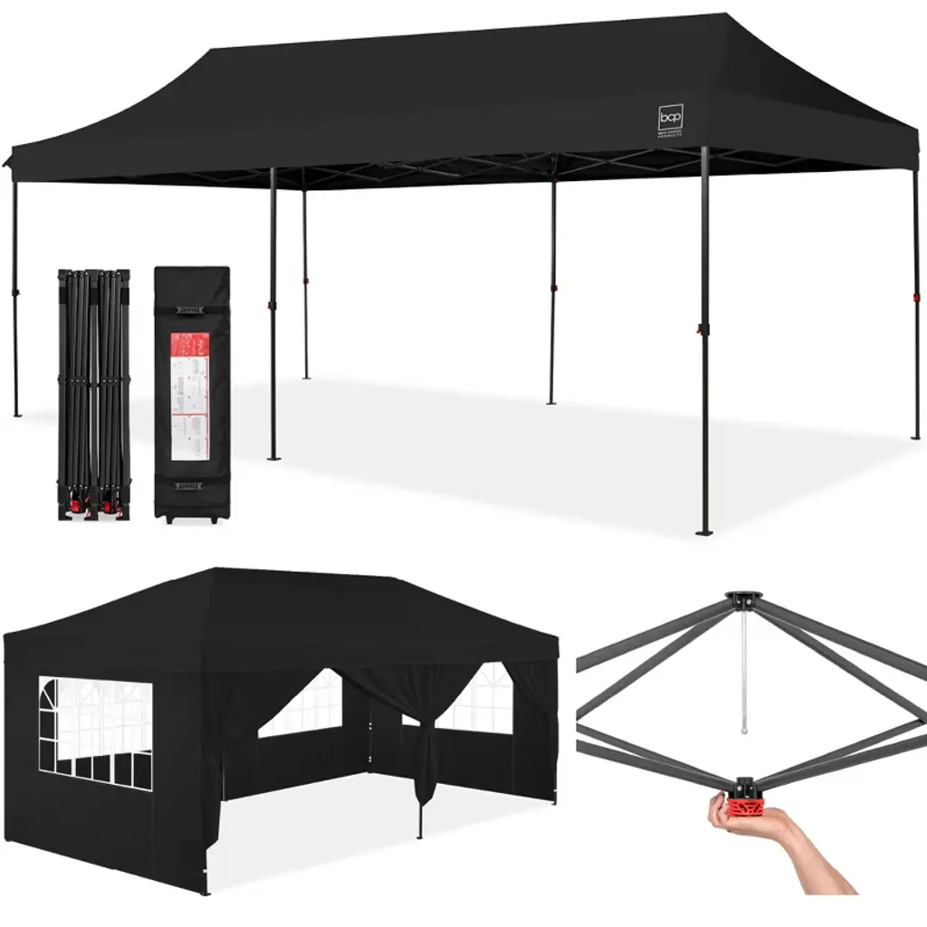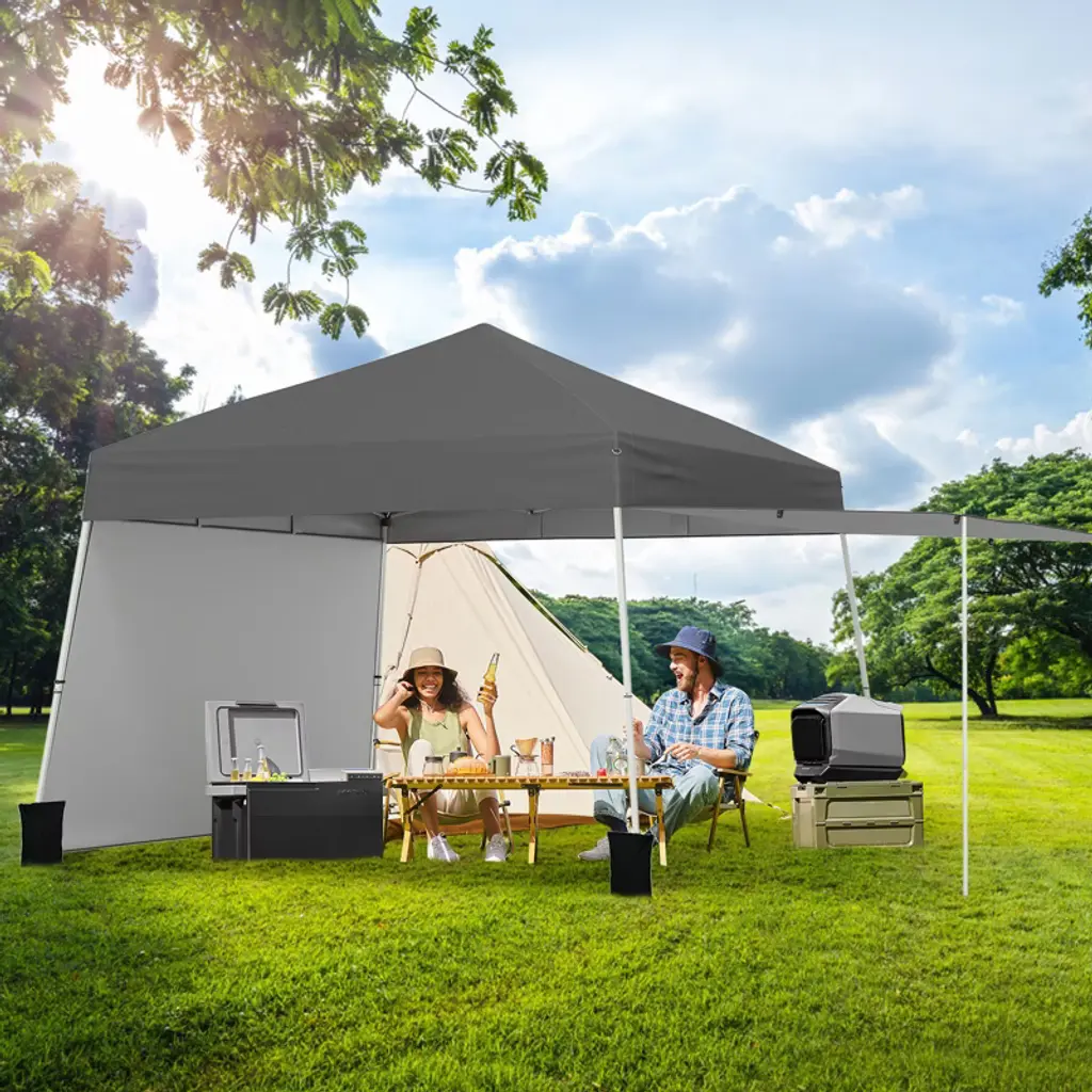 Tangkula 14 X 9.2 Ft Pop Up Canopy Tent W/ 2 Convertible Sidewalls To Awning & Stakes Gray