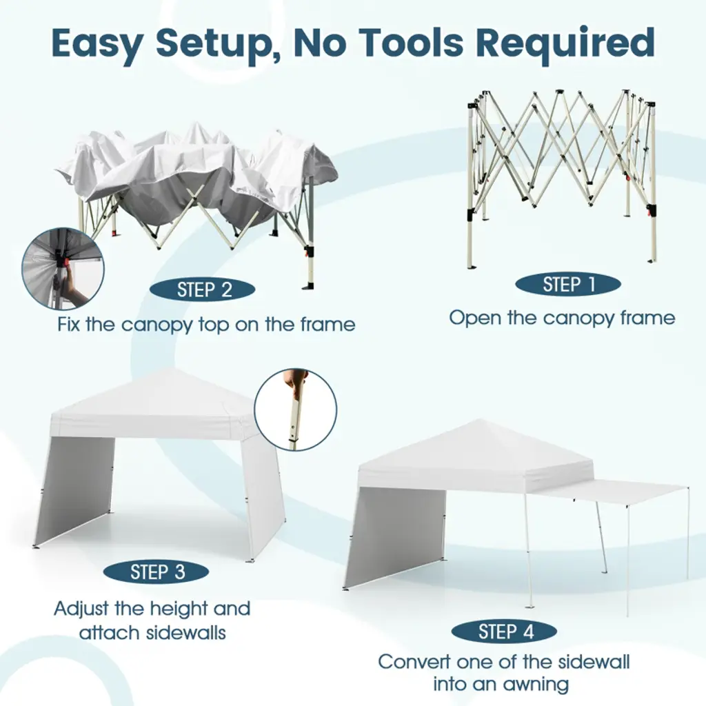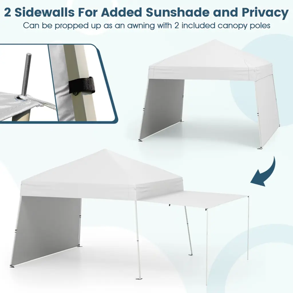 Tangkula 14 X 9.2 Ft Pop Up Canopy Tent W/ 2 Convertible Sidewalls To Awning & Stakes White