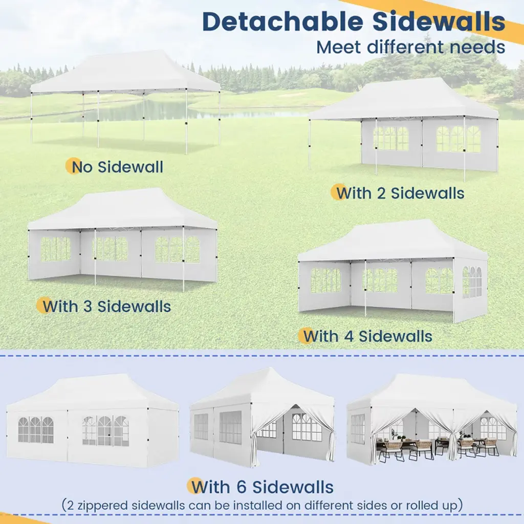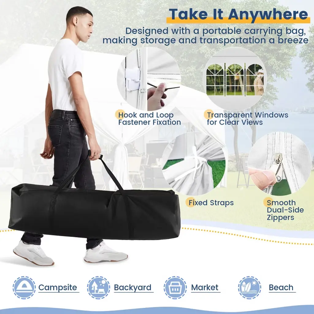 Tangkula 20 X 10 Ft Canopy W/ 6 Detachable Sidewalls Carrying Bag Upf50+ Sun Protection White