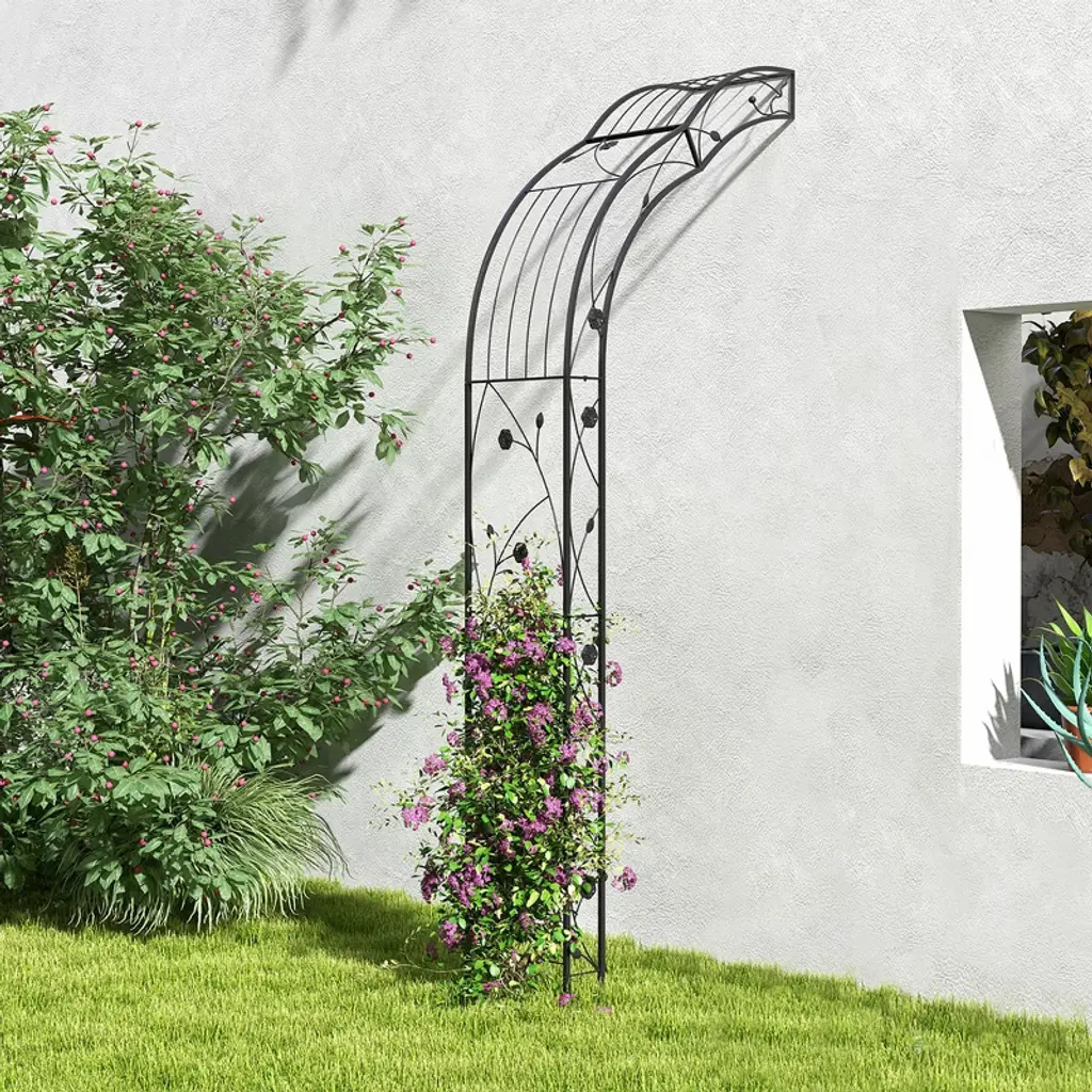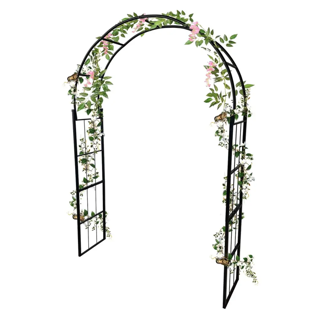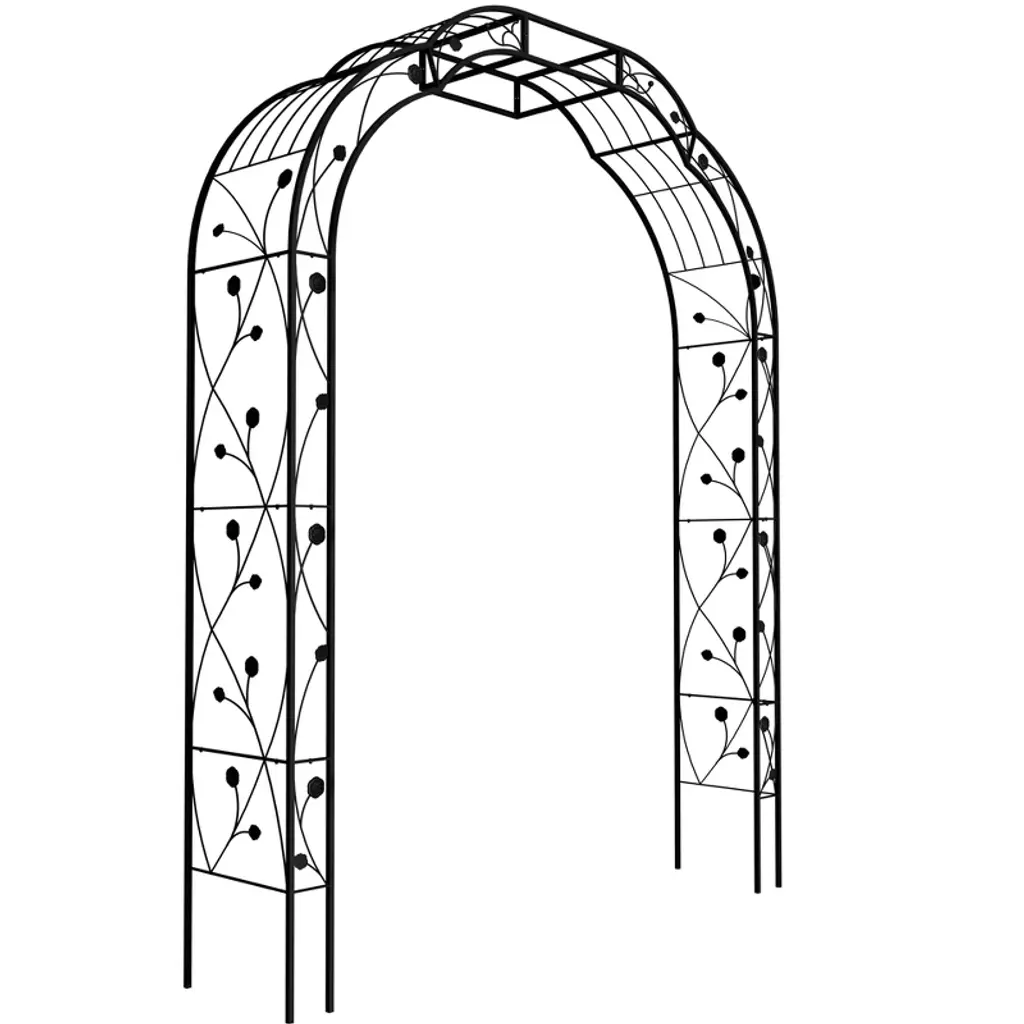 Our garden arch trellis is a versatile addition for any occasion. Whether used as a garden climbing pergola, an outdoor decoration, a photo backdrop stand, or a stunning wedding arch, it adds charm and elegance. The high-strength metal frame ensures durability, as it is resistant to rust, peeling, and chipping, while the sharp pointed ends provide stability by securely fixing the arch arbor to the ground. Moreover, it has 6 combination ways for you choose, the top arch consists of 4 parts, and 4 parts can form a variety of forms depending on how they are combined and the direction in which they are installed. Use our garden arch trellis, transform your garden into a botanical oasis and create beautiful memories!FeaturesPersonalize your garden with various climbing plants and decorations Create 6 different trellis sizes with 2 half arches and 4 parts Easily secure the trellis to a wall or freestand it in the groundSpecifications:Color: Black Material: Metal Overall Dimensions: 59" x 16" x 99" (W x D x H) Size of the Half Arch: 29.5" x 16" x 99" (W x D x H) Net Weight: 23 lbs Package Includes: 1 x Garden Arch Trellis 1 x User's Manual