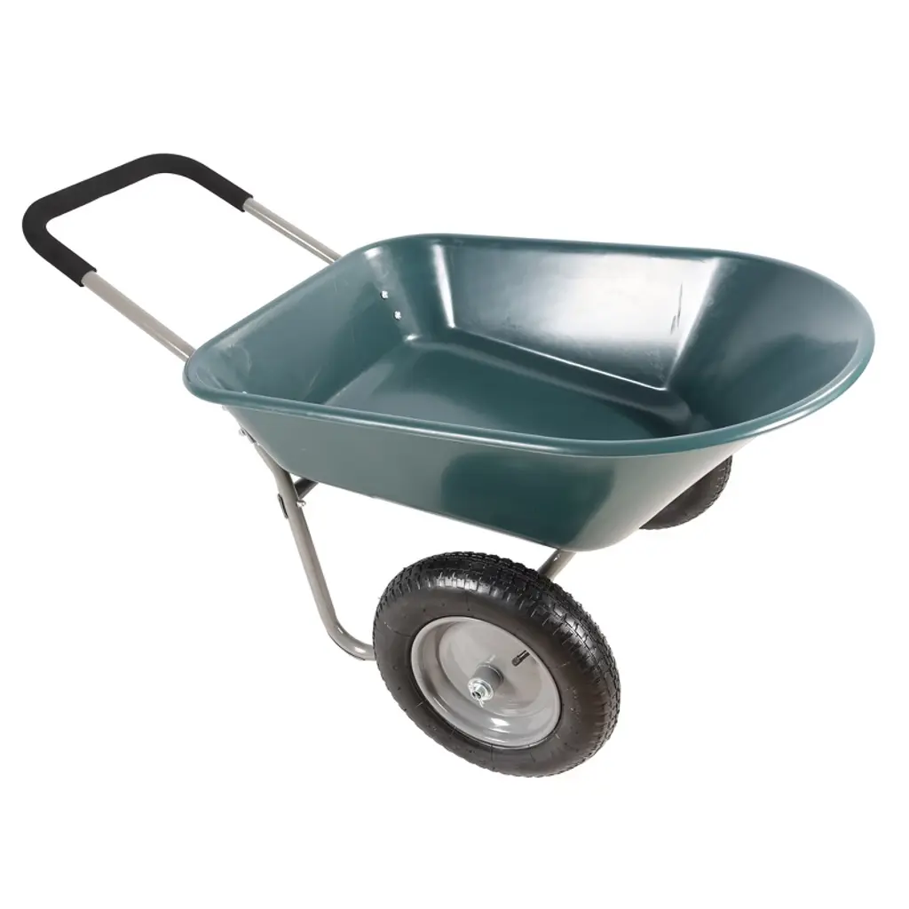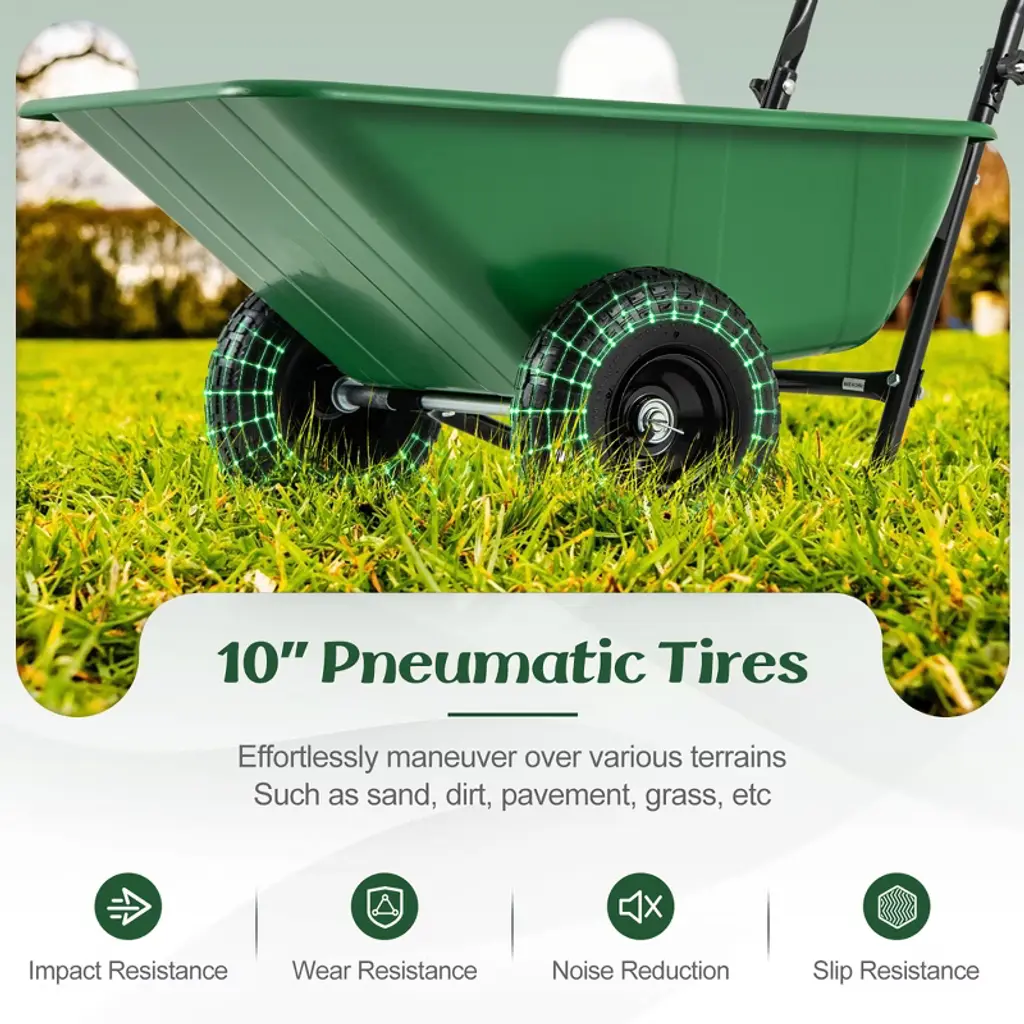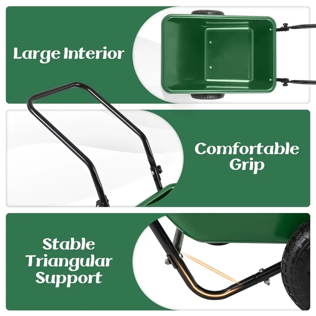 Tangkula Dual-wheel Wheelbarrow W/ Pneumatic Tires 330 Lbs Load Capacity 21 Gal Volume Black & Green
