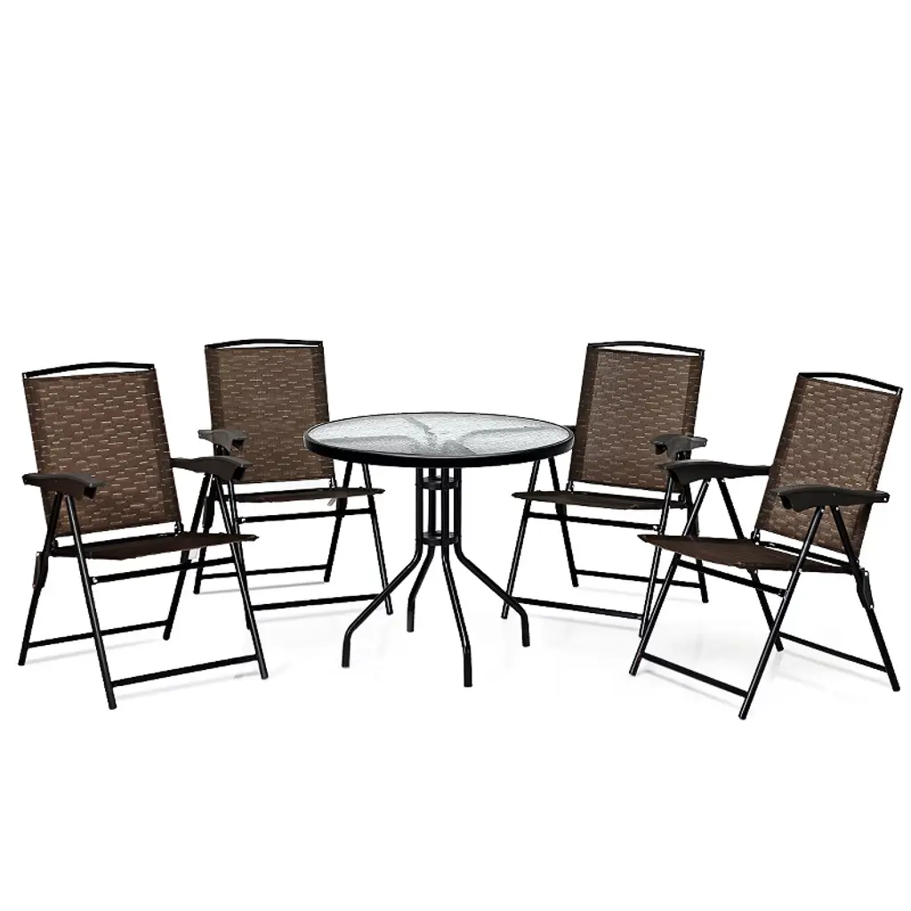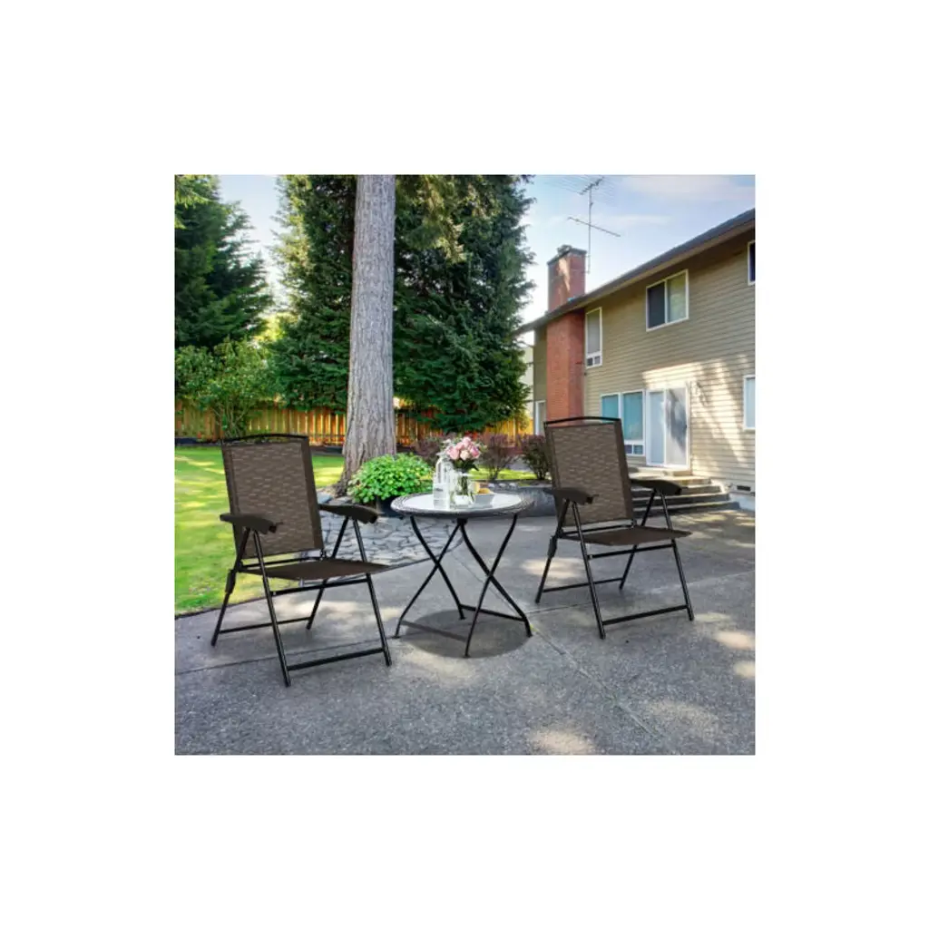 Tangkula Set Of 2 Folding Sling Chairs Steel Armrest Patio Garden Pool Adjustable Back