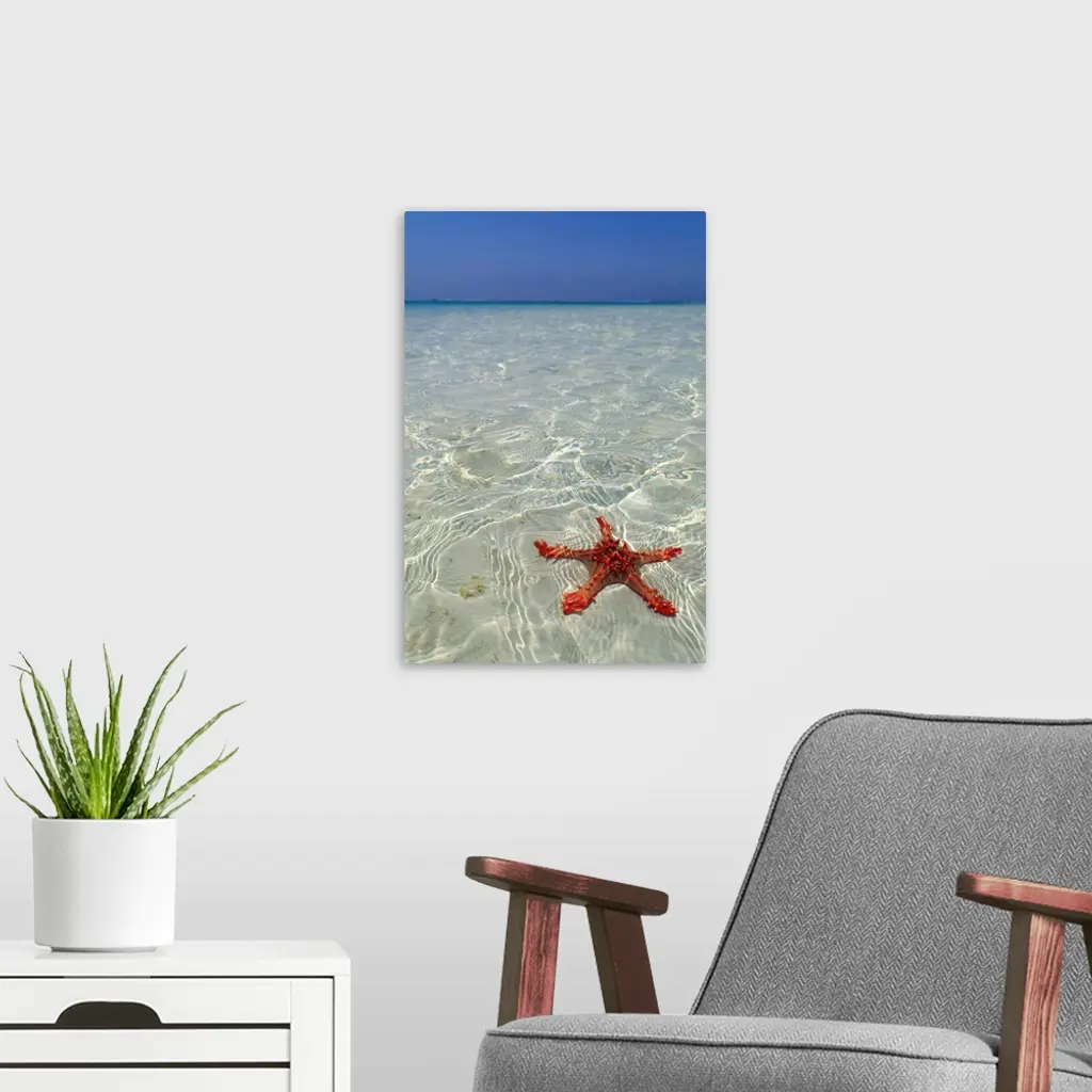 Tanzania. Zanzibar, Jambiani, Starfish Easily Visible Close To The Reef At Low Tide