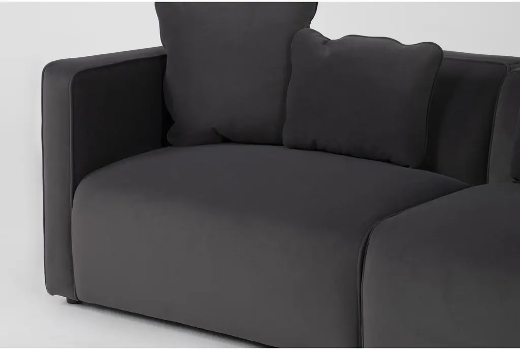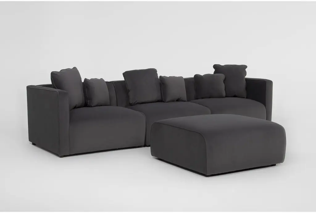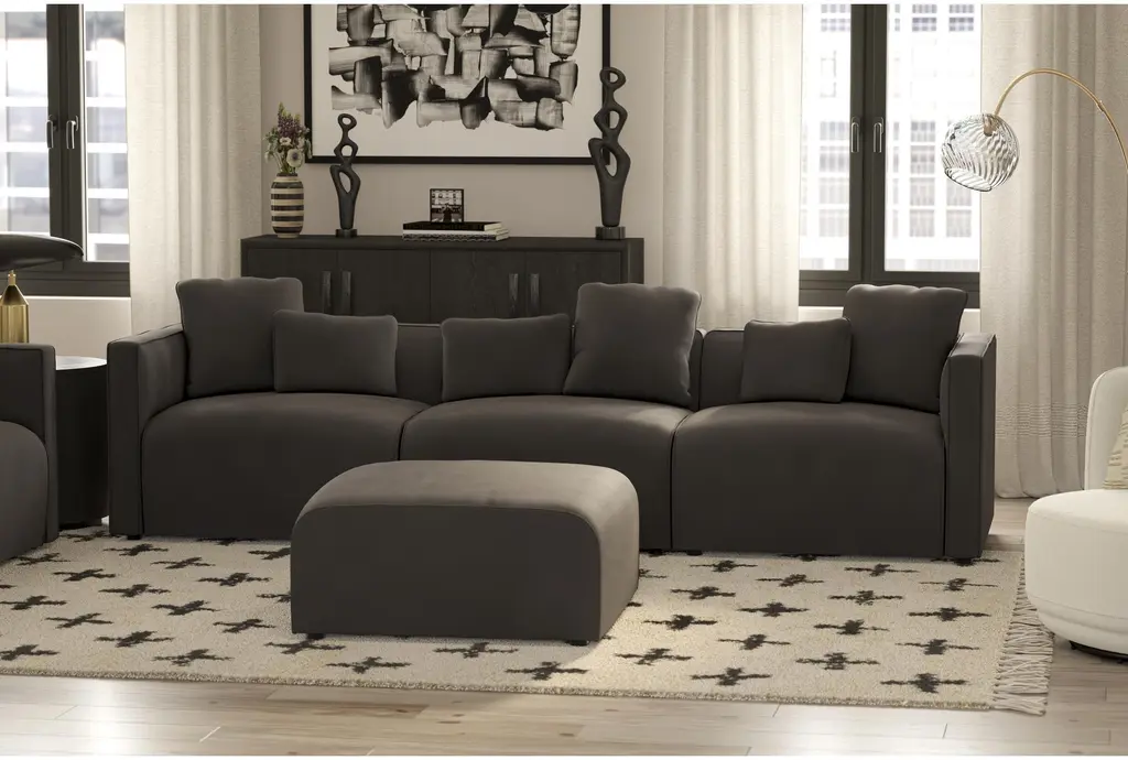 Introducing the Tao Dark Grey Velvet 119" 3 Piece Sofa With Ottoman, perfect for adding a touch of modern sophistication to your living room. This modular sofa set, designed for comfort and style, is made with dark grey velvet that feels luxurious to the touch.