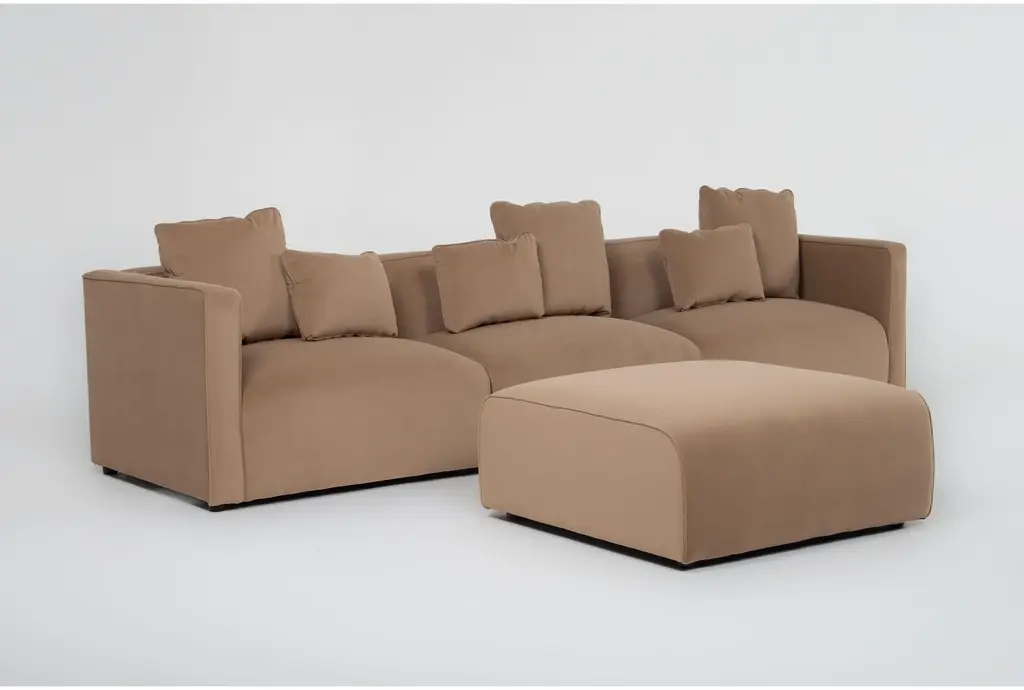 Tao Khaki Beige Velvet 119" 3 Piece Sofa With Ottoman