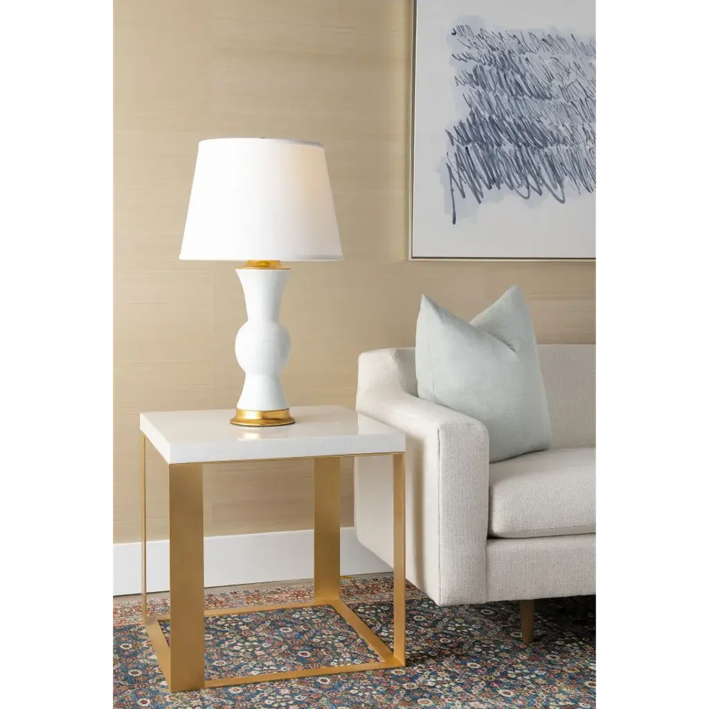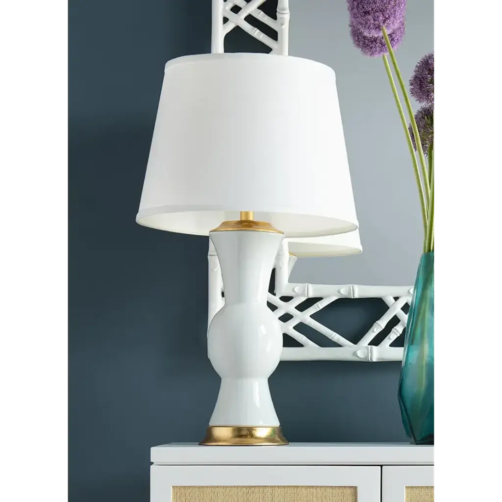 The Tao Lamp is a lighting accent that’s made to be treasured. Its elegant profile is steeped in tradition, nodding to the shape of the ancient Chinese “Gu” vessels of the Shang and Zhou dynasties. Realized in beautiful Blanc de Chine porcelain, our version features an updated silhouette with a flared top and base that meet at a rotund center, a detail that softens its elongated shape with rounded curves. The porcelain is topped with a glazed finish, which adds delicate shine to complement the antique gold leaf accents of its base and finial. Pair it with a slightly tapered drum shade to create a classic look in a sitting room, bedroom, or study. Please note: Villa & House's lamp shades are sold separately.
