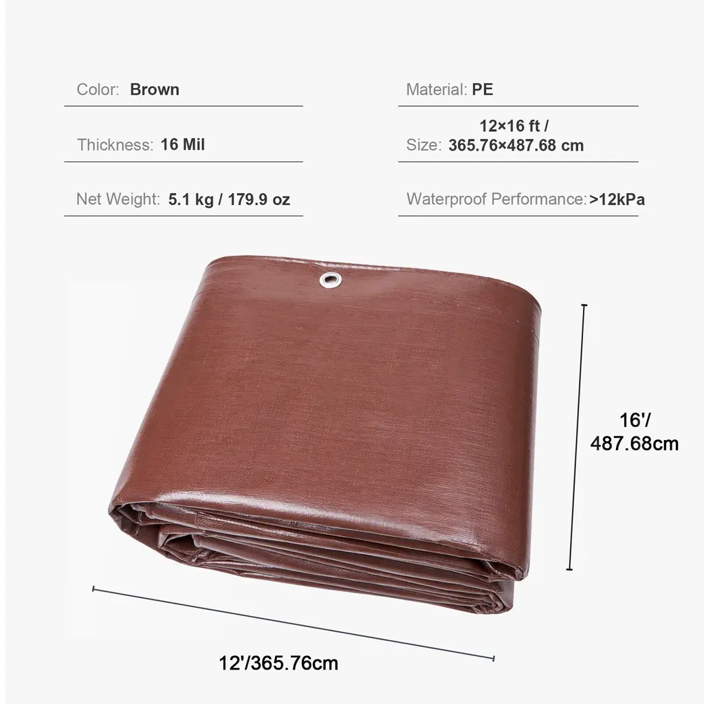 Tarp Waterproof With High Durability Reinforced Grommets And Edges - 12*16ft Brown
