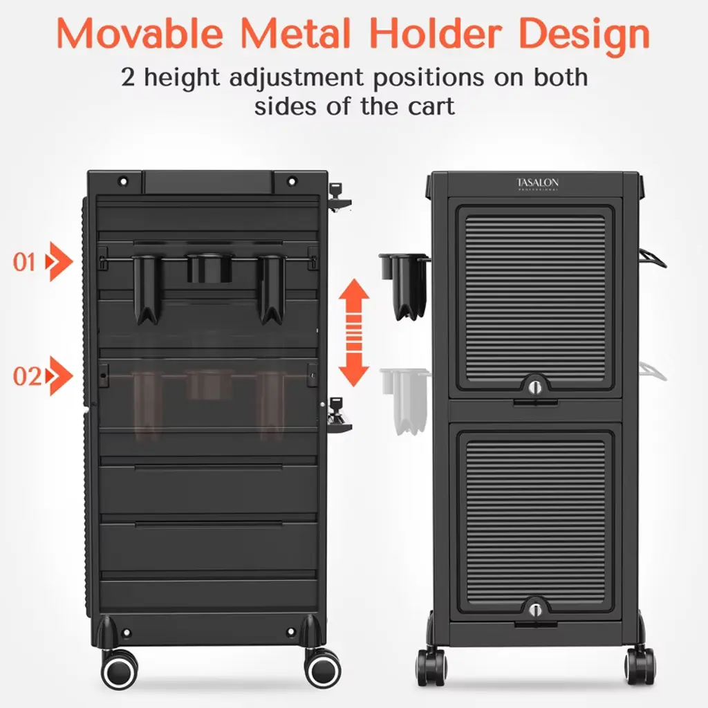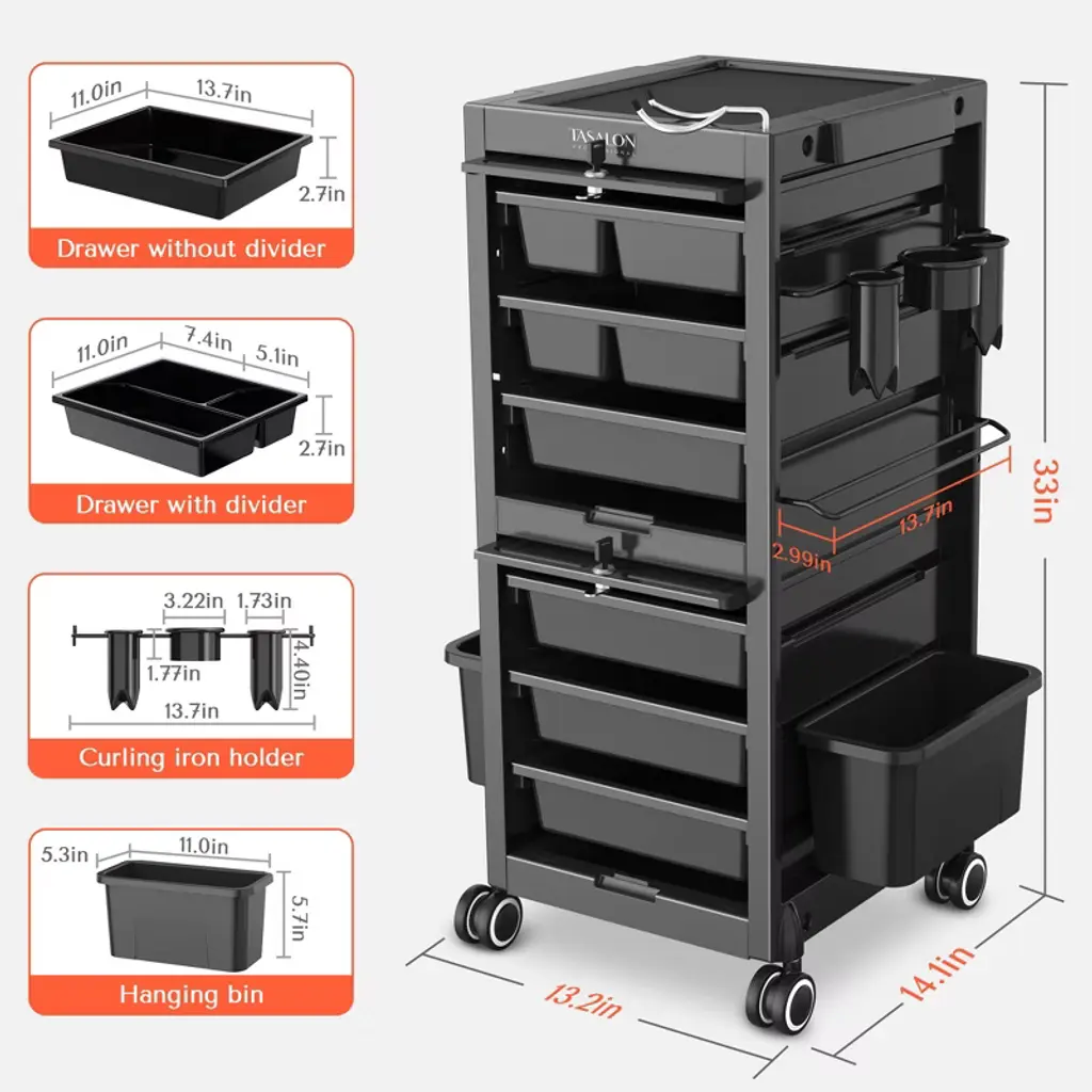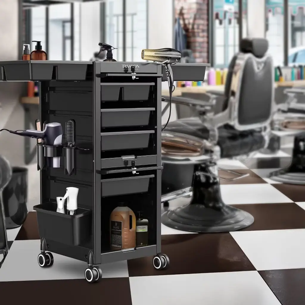 Tasalon Lockable Beauty Salon Cart, Rolling Salon Trolley With 6 Drawers And Tool Holders - Black