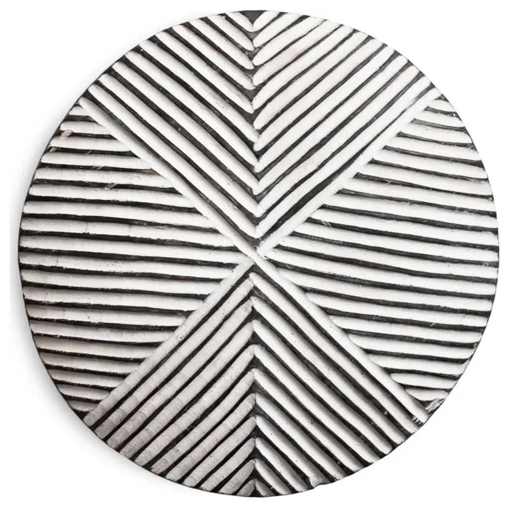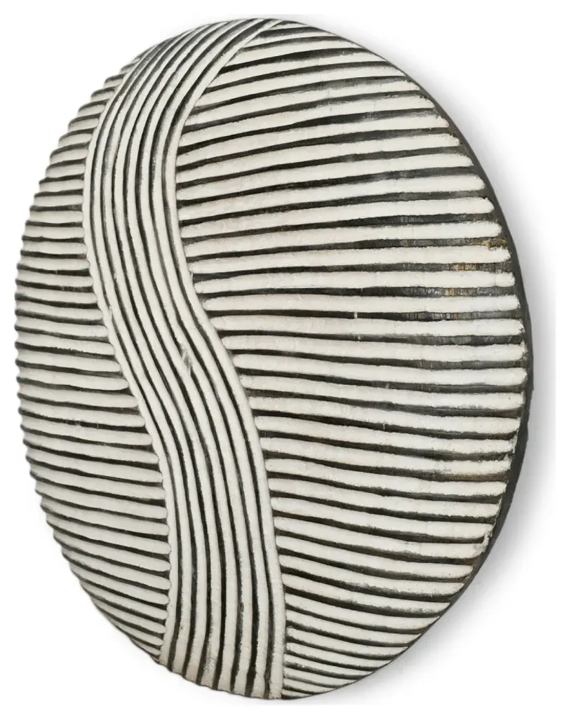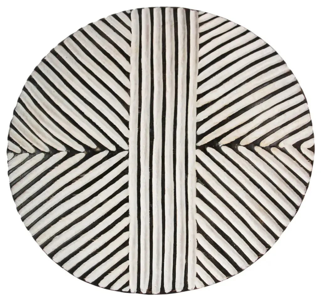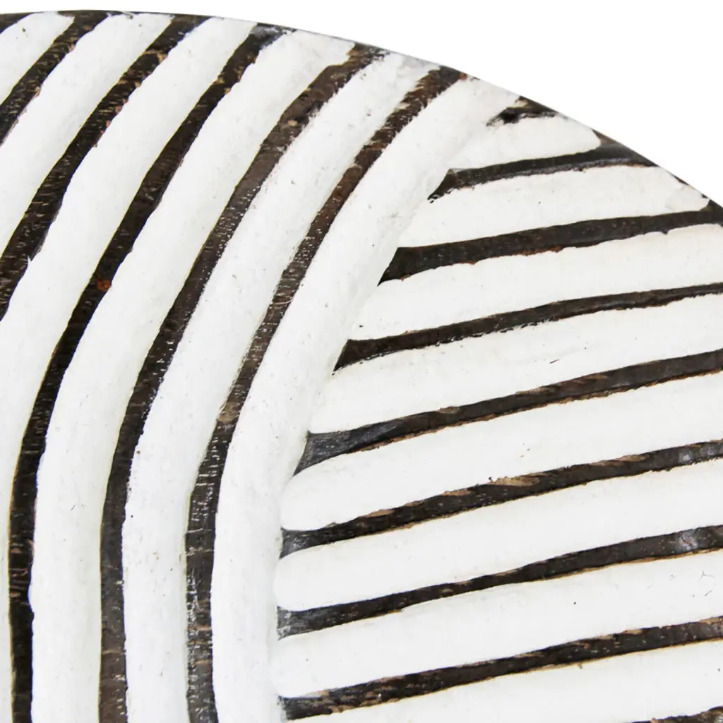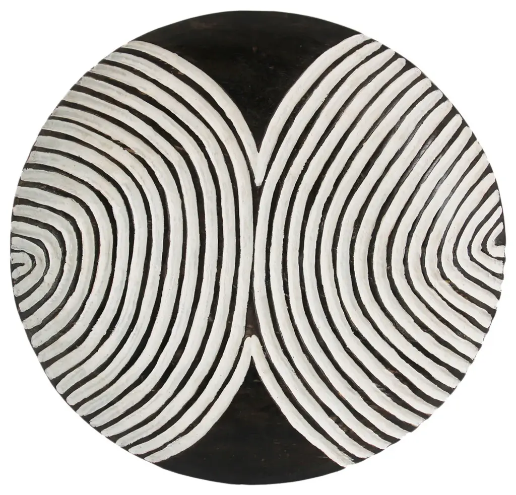 Traditional South African Zulu shields date back to King Shaka Zulu and have been used by tribesman in battle for hundred of years. As the modern world has evolved so to has the Zulu tribesman. These shields are no longer used in battle but instead used for traditional Zulu ceremonies such as weddings in telling historic ancestry stories. These carved wood designs painted in bold black and white patterns continue to have a striking modern form displayed in groupings. Each may vary slightly due to unique hand carvings. Comes with hook attached on back for hanging on wall.