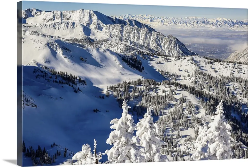 Tatoosh Range and snow covered trees, Mount Rainier National Park, Washington.