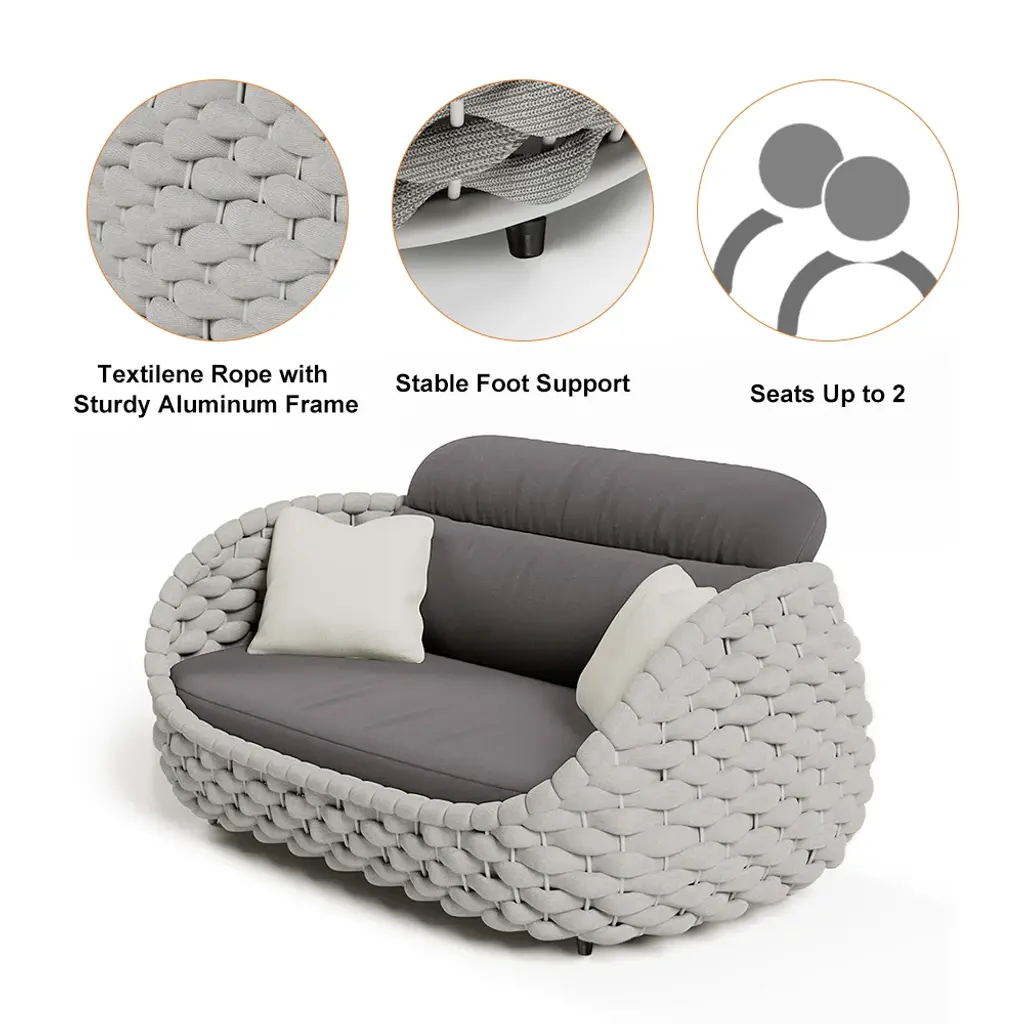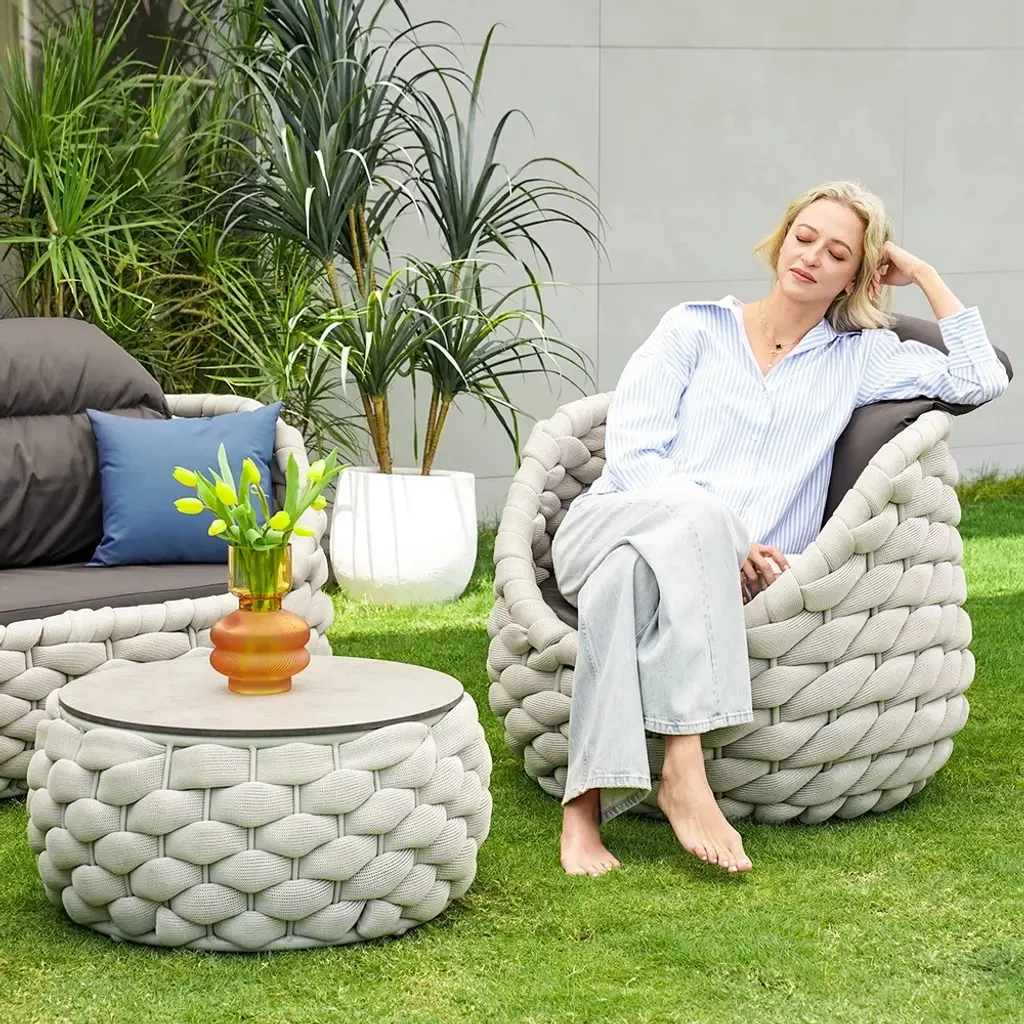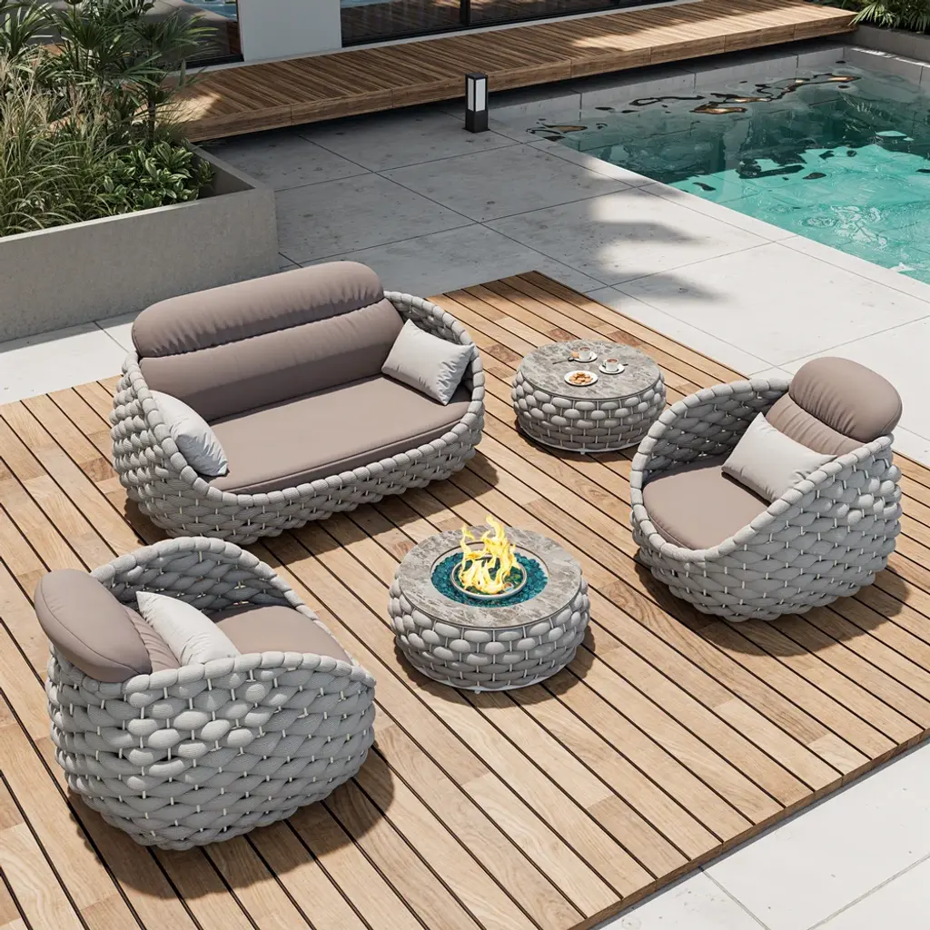 Tatta 4-Person Woven Rope Outdoor Sofa Set With Rotatable Chair