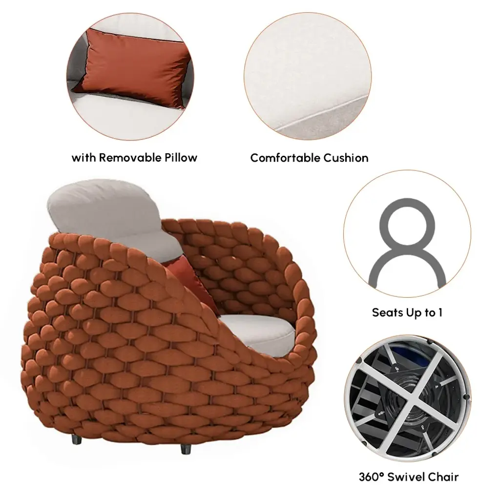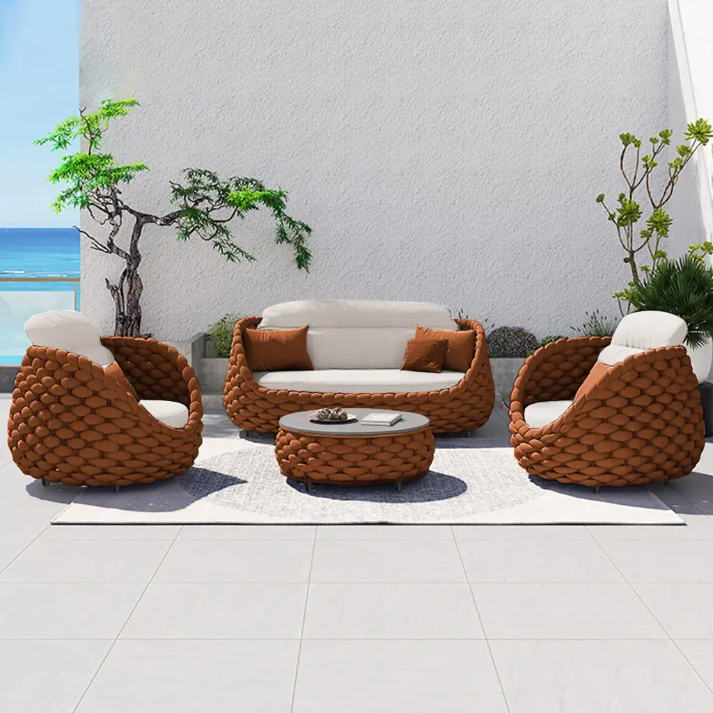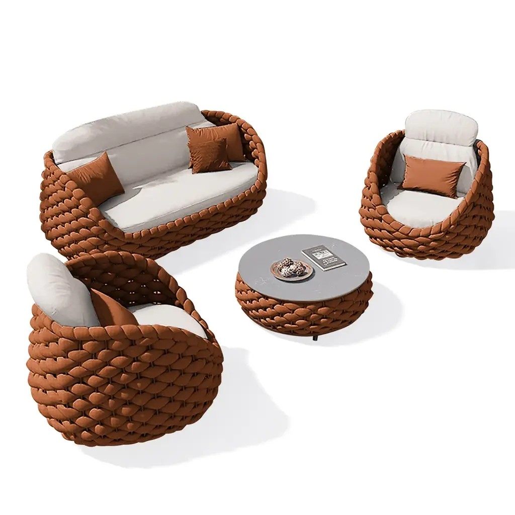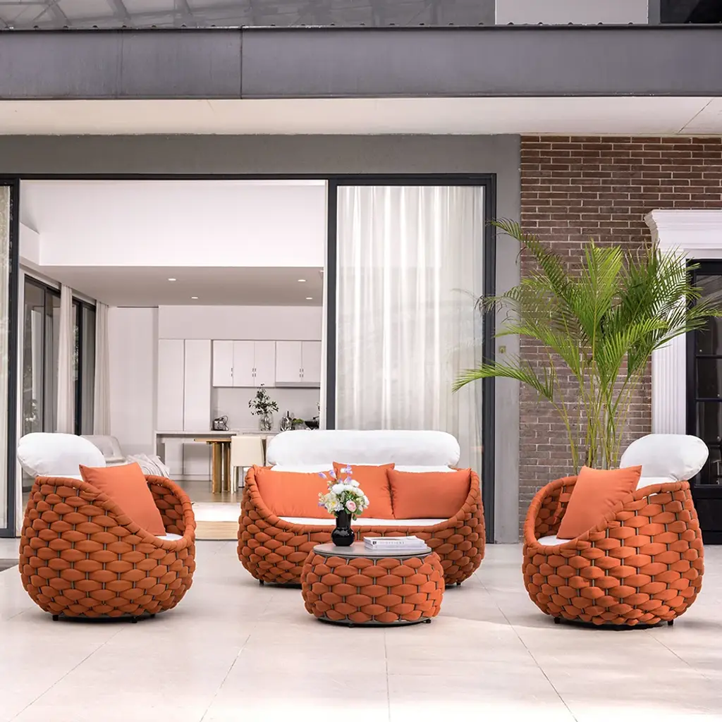 Tatta 4-Person Woven Rope Outdoor Sofa Set With Rotatable Chair