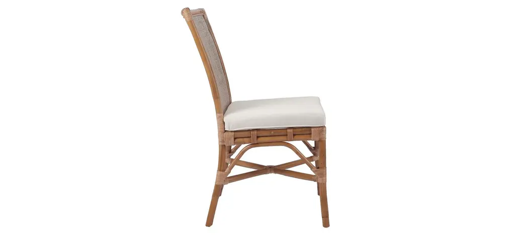 This rattan Tatum Side Chair: Set of 2 features wrapped joinery and an airy cane back. Its a lightweight design that stands up to everyday use indoors. The seat cushion is removable. Add an island living mood to interiors with the casual Tatum seating collection.