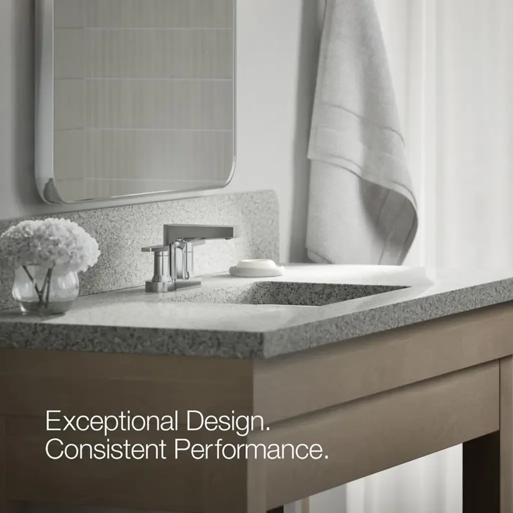 Minimalist in its design, the bathroom faucet is a versatile style choice for transitional or contemporary environments. Coordinate with showering components, and create a space that will look beautiful for years to come. This center set faucet comes equipped with easy-to-install and leak-free ultra glide valves.