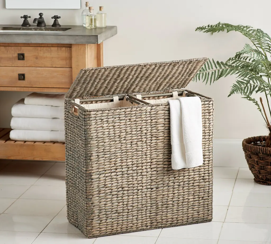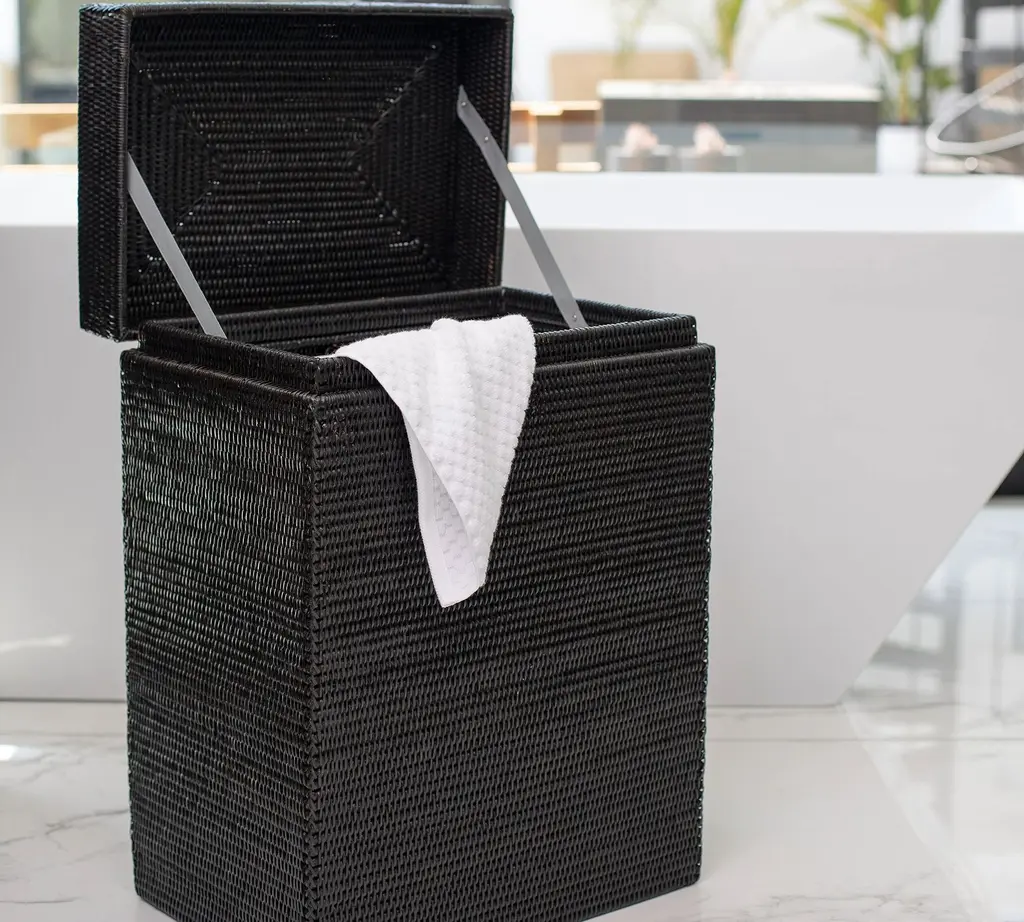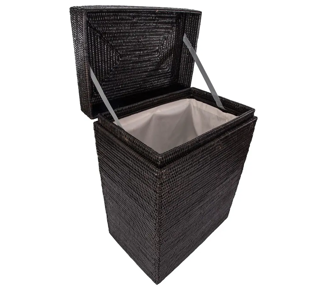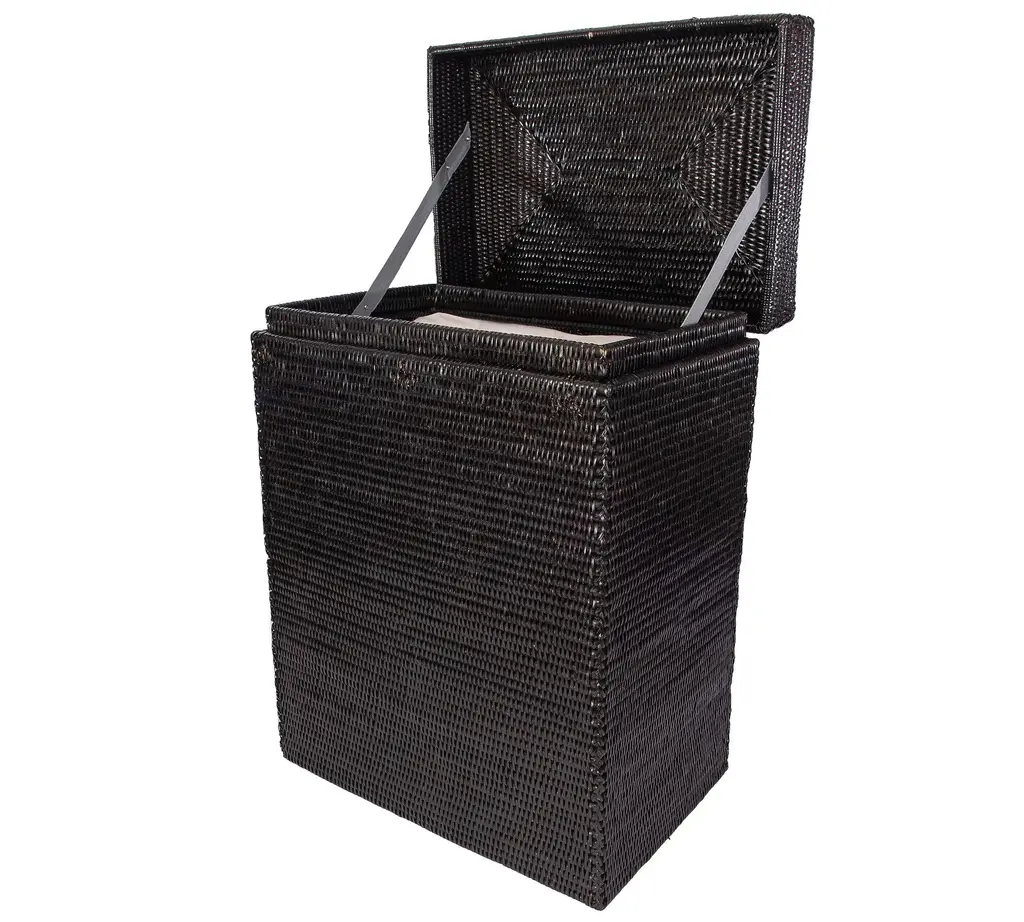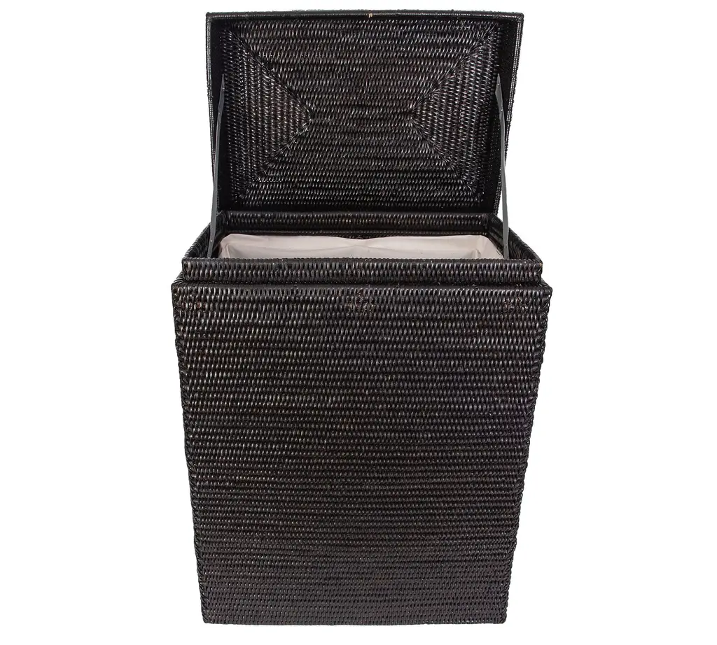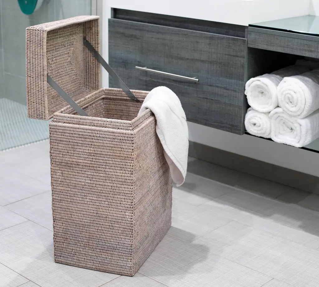 Handmade by skilled makers, the Tava Collection uses a tight weave and durable construction to brings form and function to the space. This beautiful hinged hamper keeps ready-to-wash clothes out of sight until laundry day.
