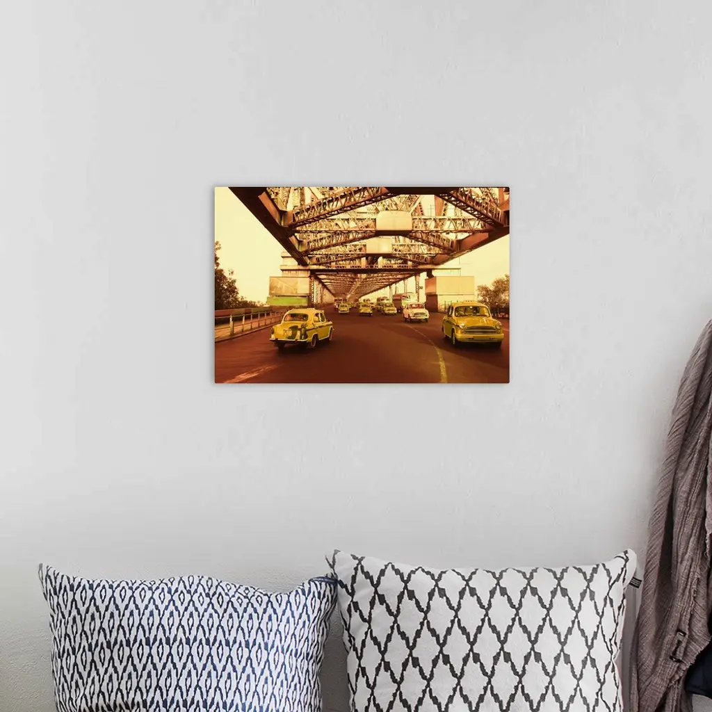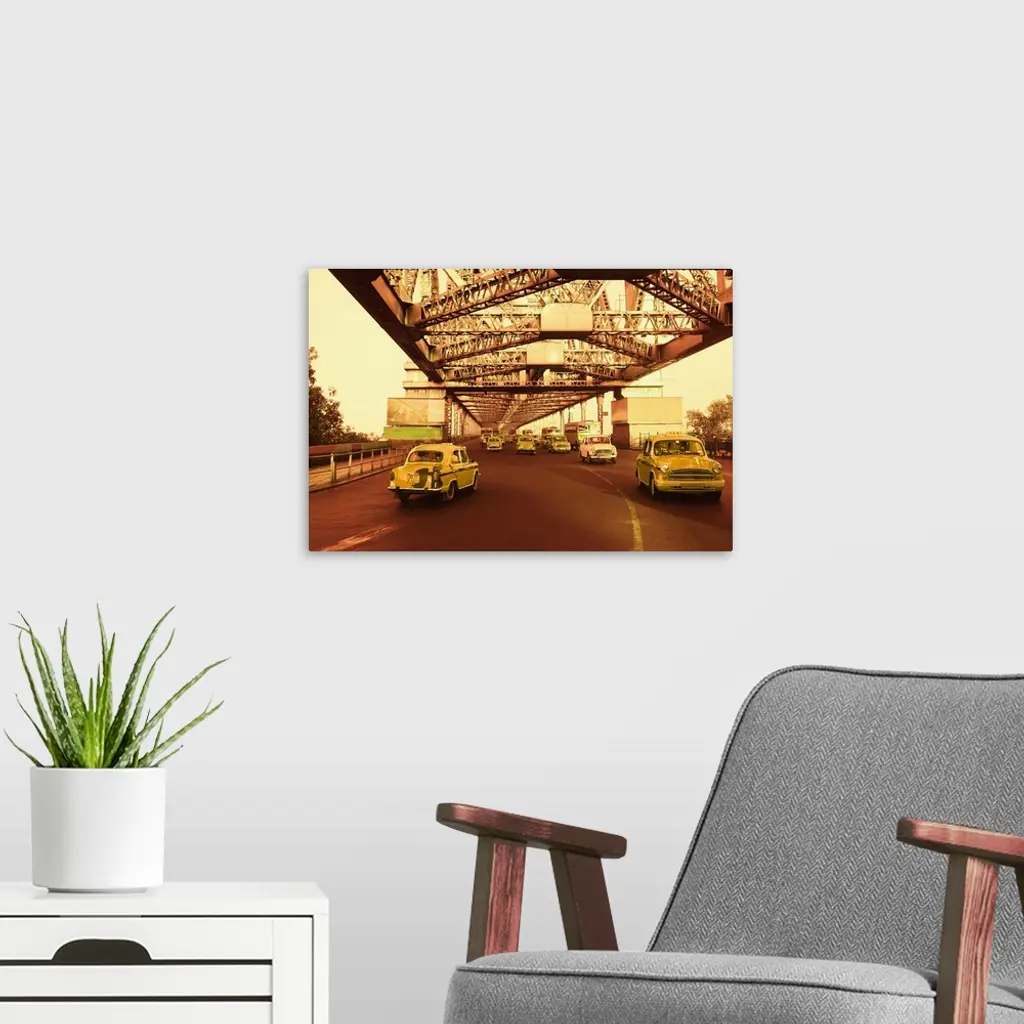 Taxis on a bridge, Howrah Bridge, Kolkata, West Bengal, India wall art for home and office decor. Discover canvas art prints, photos, mural, big canvas art and framed wall art in GreatBigCanvas.com's varied collections.