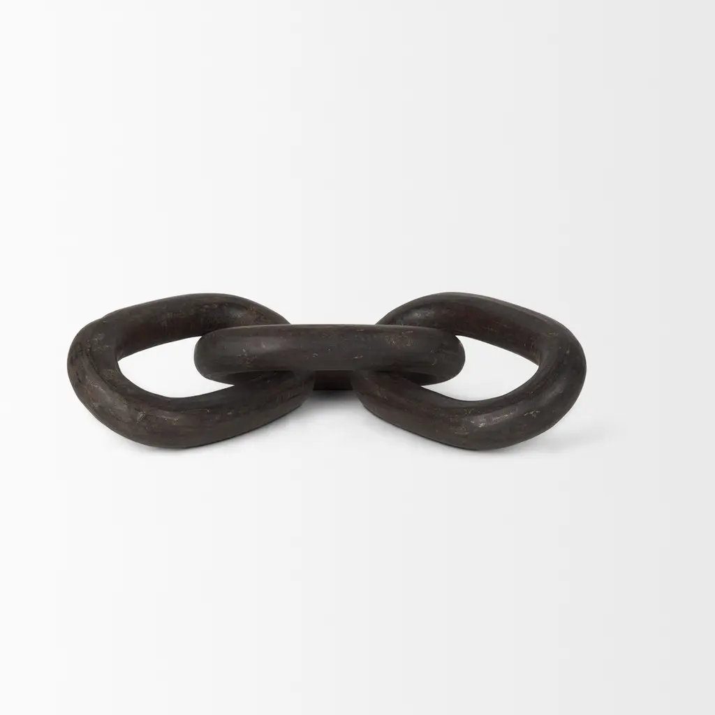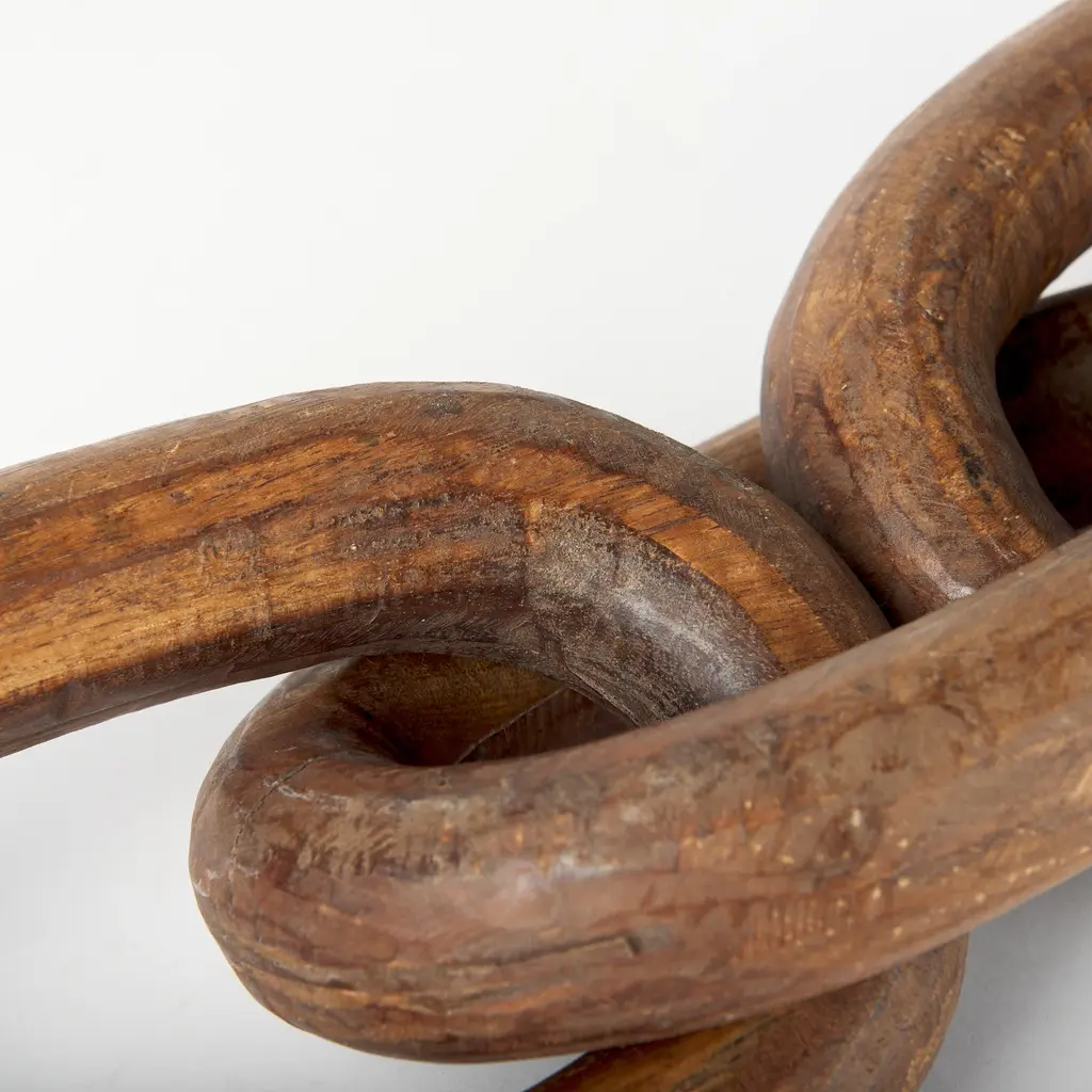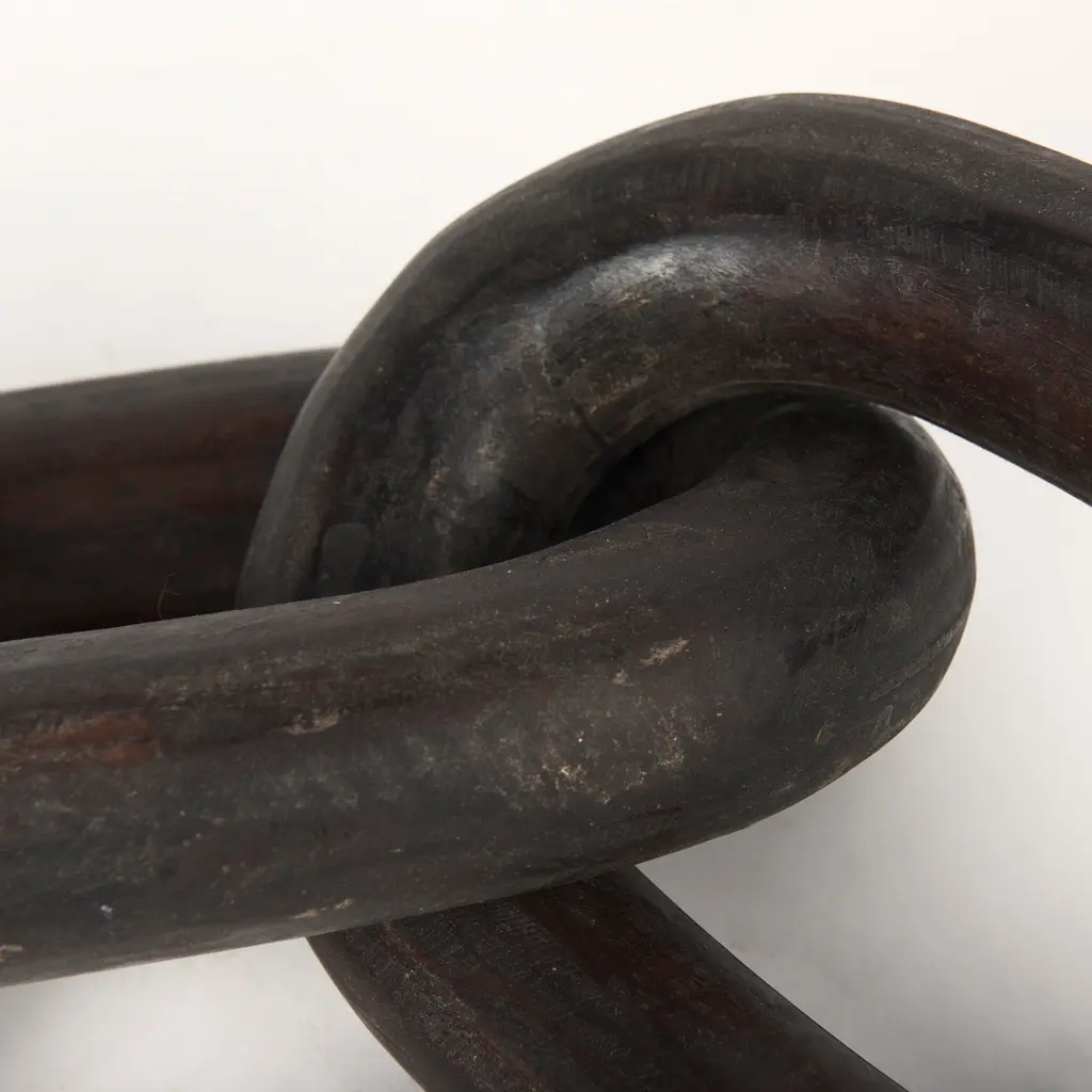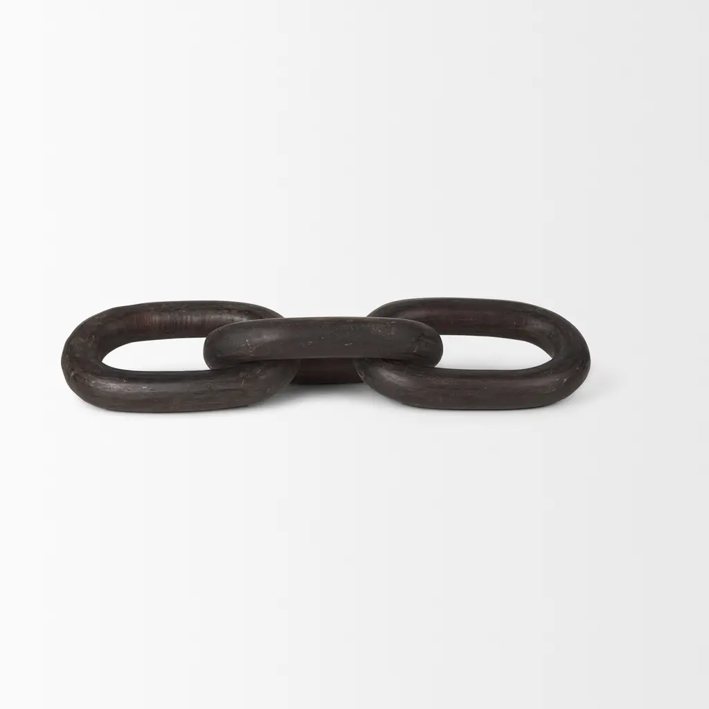 Add drama and flair with the oversized Tayla Chain Link. Hand-carved out of reclaimed wood and finished in a deep, dark brown, this accessory is the "perfect something extra" that was missing in your space. Organic textures and natural elements add a grounding charm to any surface that it is placed on. ;