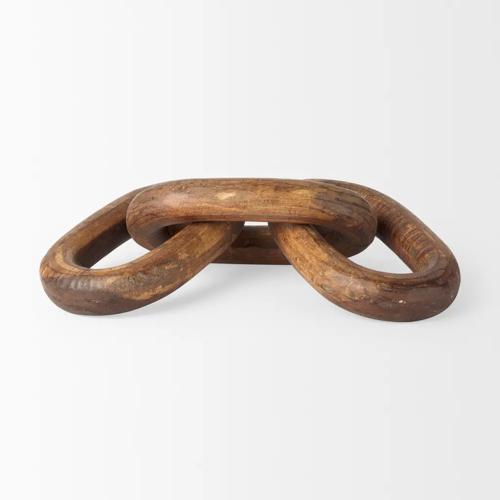 Add drama and flair with the oversized Tayla Chain Link. Hand-carved out of reclaimed wood and finished in a deep, dark brown, this accessory is the "perfect something extra" that was missing in your space. Organic textures and natural elements add a grounding charm to any surface that it is placed on. ;