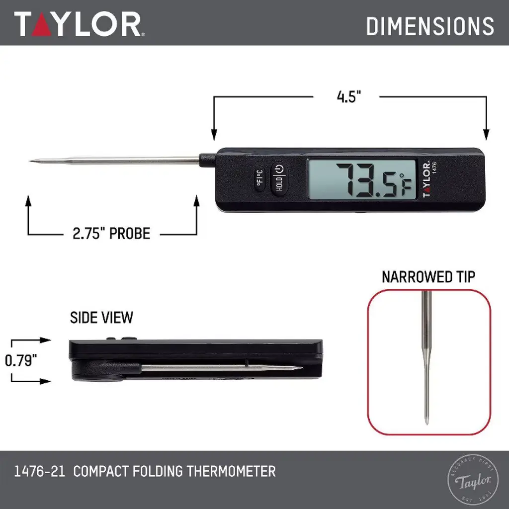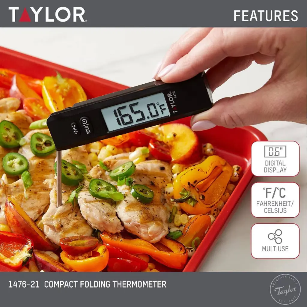 Taylor Compact Digital Folding Probe Kitchen Meat Cooking Thermometer: Stainless Steel, Digital Display, -40 To 392°f Range