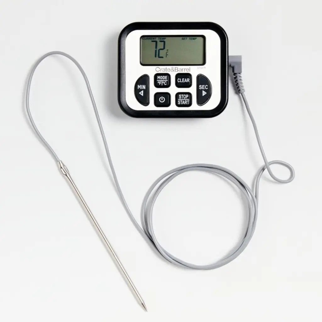 The Taylor Precision Digital Cooking Thermometer andTimer is an example of superior design and craftsmanship. This product helps to eliminate over-cooking or under-cooking foods. Presetting to the recommended cooking temperatures and/or cooking time is simple and ensures that food will be cooked to your preferred taste.
