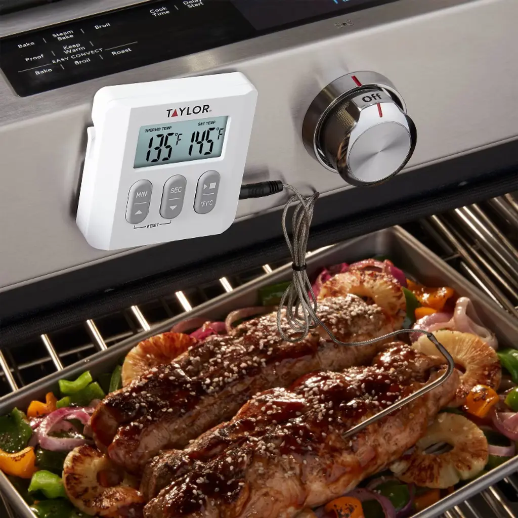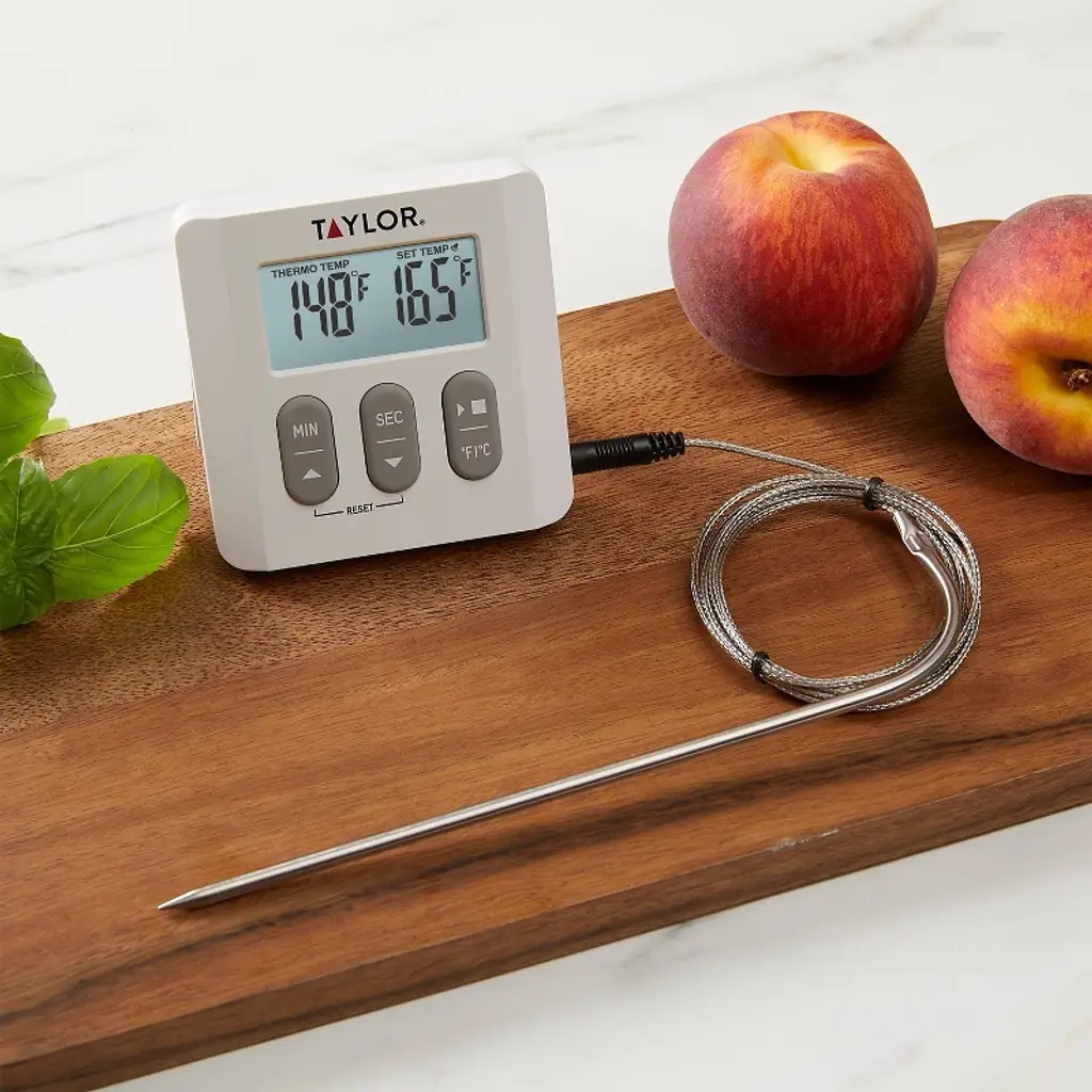 Taylor Programmable Digital Probe Kitchen Meat Cooking Thermometer With Timer: Stainless Steel, Digital Display, 482°f Max