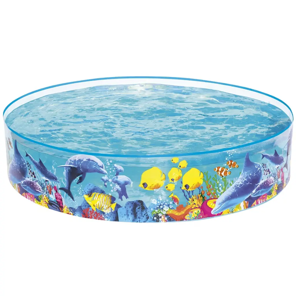 The perfect kiddie pool to splash away the summer heat. Featuring a cute and fun Sea Buddies print all the way around. Best of all, you only need one person for setup, and no inflation is required. Open the pool up on a debris-free soft surface and gently stretch out the bottom as the water fills to support the sides. Repair patch included for small holes. Warning: Never leave children unattended near water. Adult supervision is required. Recommended for ages 2-6