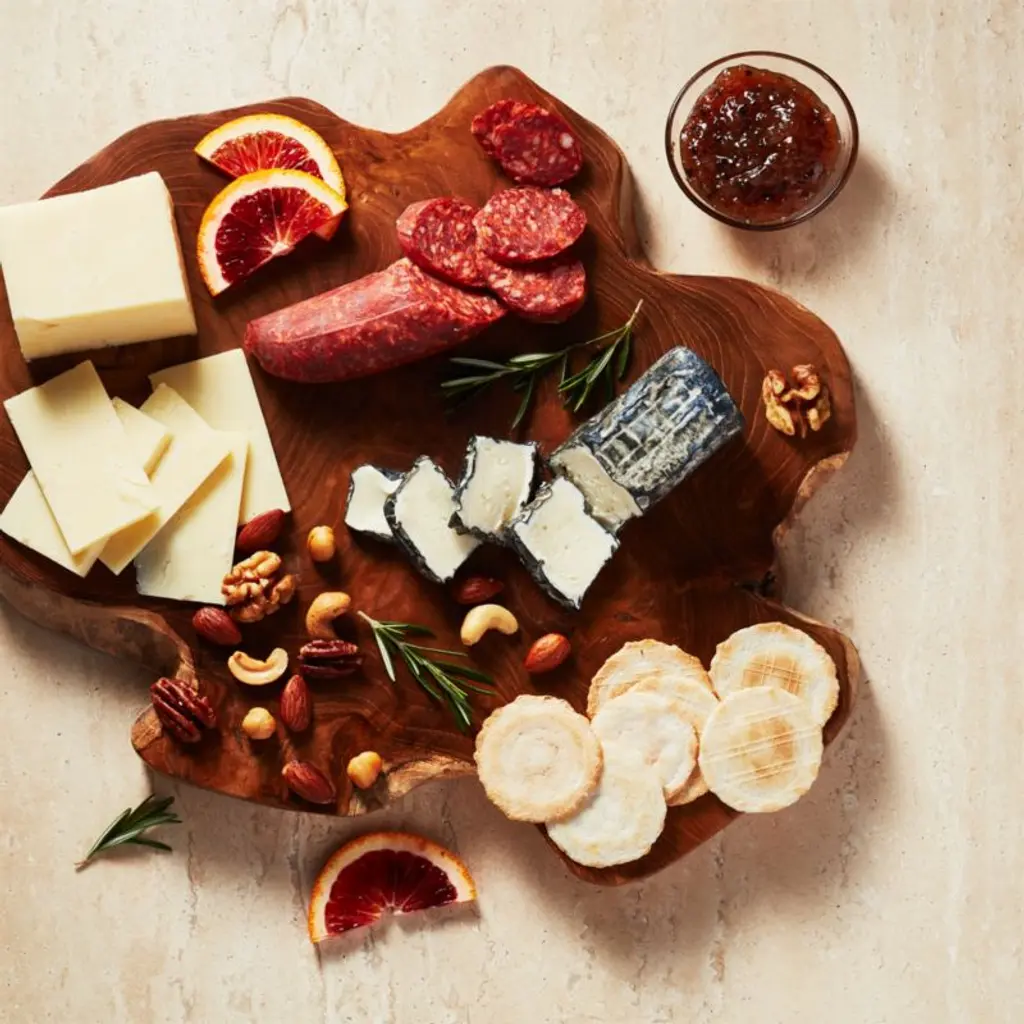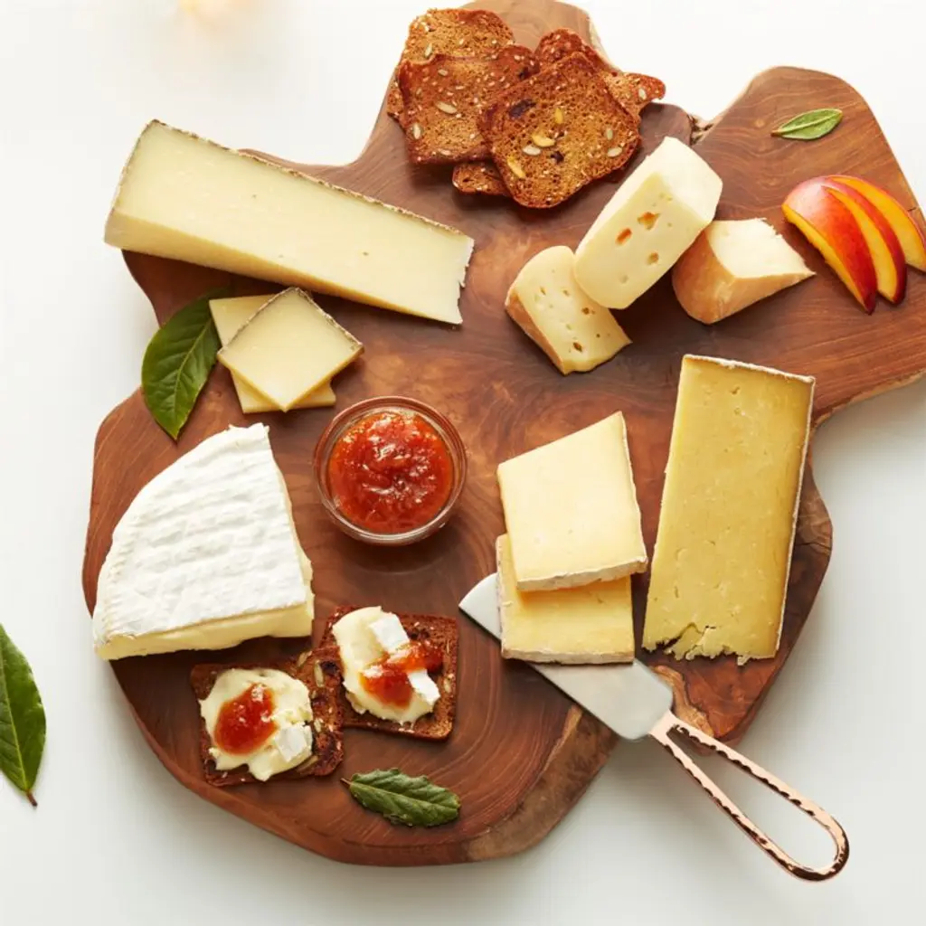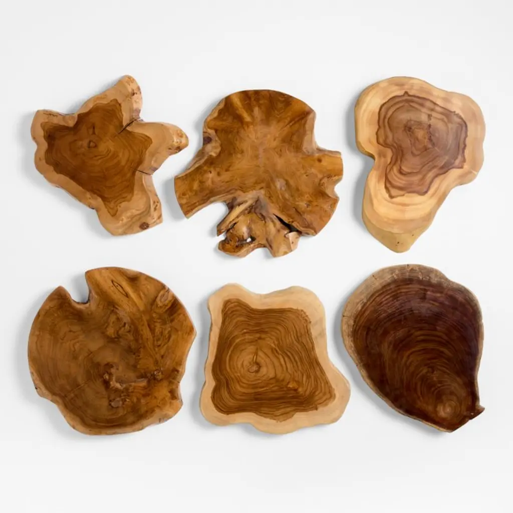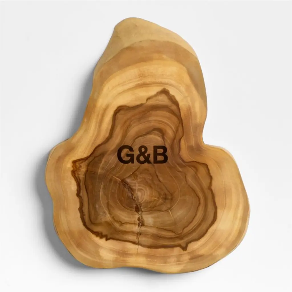Fashioned from a cross-cut section of teak root, this natural serving board makes the most of the wood's irregular growth ring patterns and gnarled shapes. Laden with hors d'oeuvres, cheeses or charcuterie, this organic serving piece is sure to spark conversation. Each board will exhibit its own characteristics, varying slightly in color, shape and size.