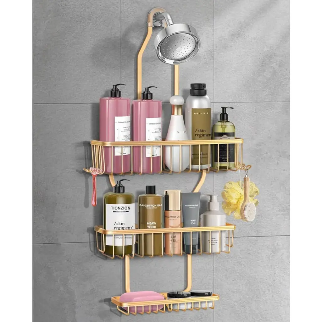 Storage made simple: with this stylish shower and bathtub caddy, all of your necessities will be right there. This particular teak shower organizer has 3 small baskets and 2 hooks. This wood shower caddy also has 2 suction cup that keeps the caddy secure even when the surfaces are wet. Smart design: this organizer has a 3-tier shelf which allows for the storage of products that are of all shapes and sizes. This teak shower caddy for inside a shower will enable you to have all of your showering needs as close to you as possible Also, the 2 hooks are perfect for you to hang washcloths, or loofahs Easy installation: all you have to do is hang the caddy over the shower head and store all of your things. This teak shower caddy can be used with handheld hose-style and rain-style shower heads. There is no hardware or drilling required. You can keep everything secure with the suction cup and the top grip Quality construction: premium grade 100% Indonesian solid teak wood shower caddy. Teak wood which is great for showers, naturally water resistant. Fits most shower heads: the large space at the top is perfect for mounting the caddy. The shower caddy measure 13" x 4.7" x 27"