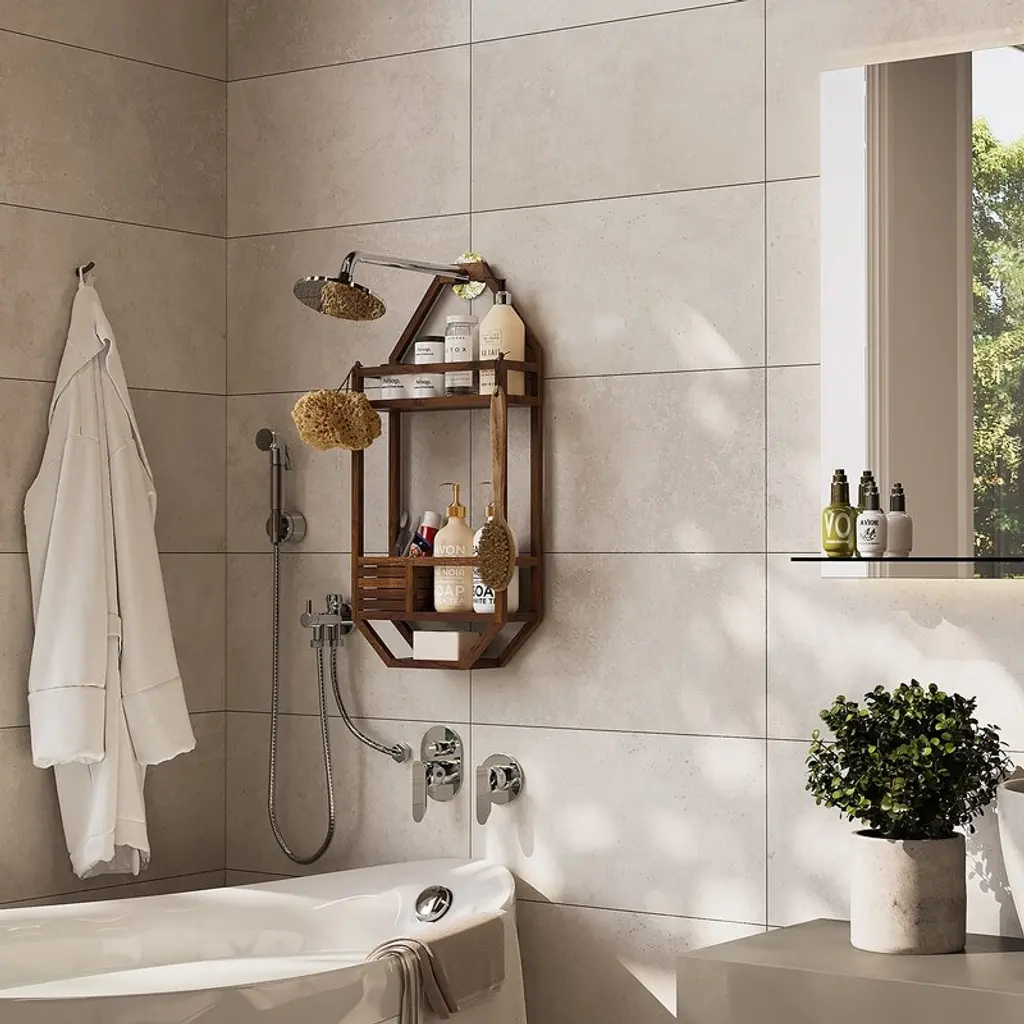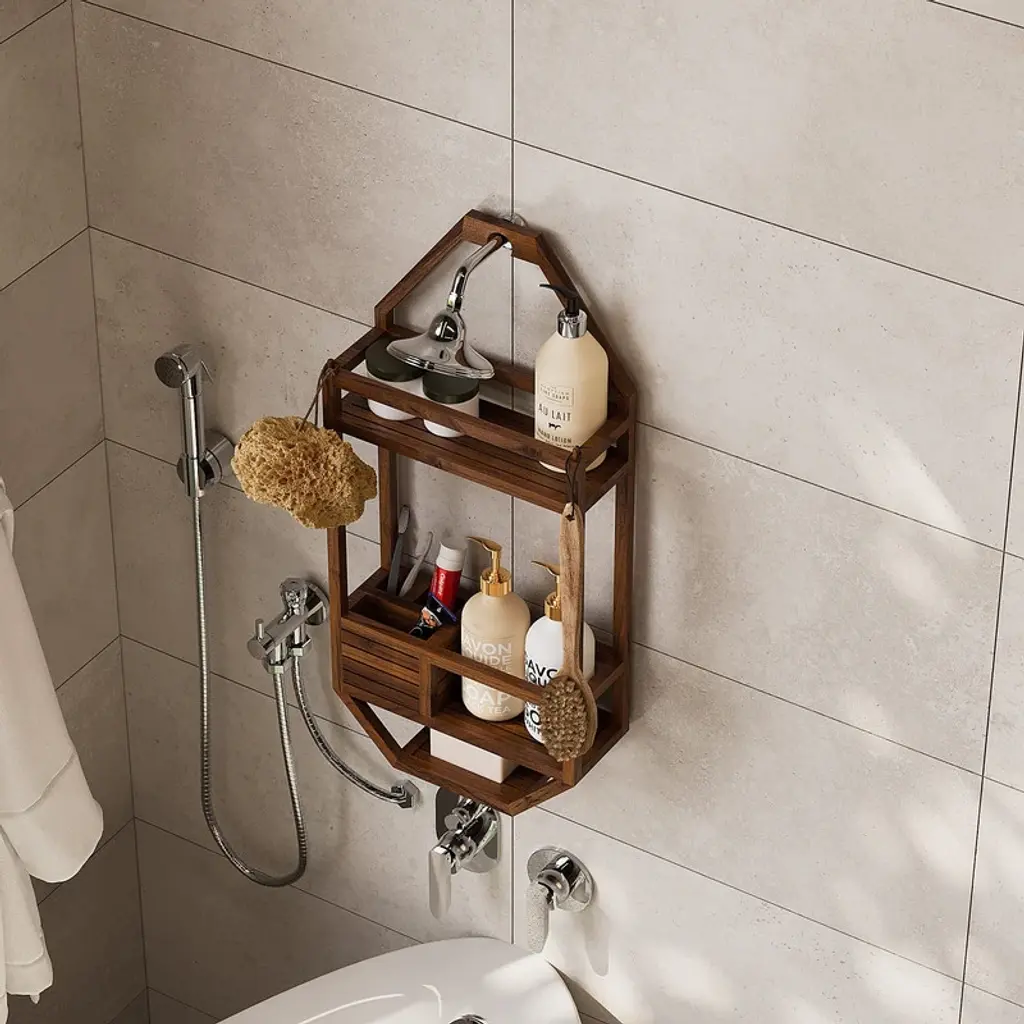 Teak Shower Caddy - 4.7"d X 13"w X 27"h - 4.7"d X 13"w X 27"h - Teak