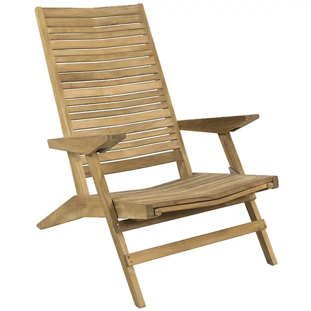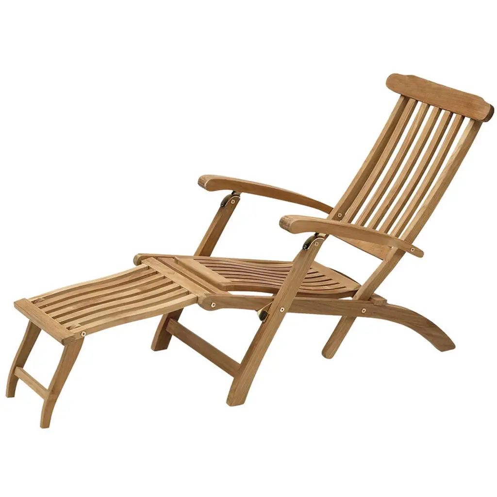 Stylish and solid, our Teak Steamer Chairs are hand crafted from Indonesian Teak, with a java colored finish, and fitted with solid brass hardware. Solid mortise and tenon joinery coupled with highly skilled wood-steaming creates solid, snug fitting parts. Take in the sun and relax in style in one of five reclined positions, a perfect companion for any poolside or patio.Indonesian teak with a Java finish and solid brass hardwareFolds for ease of portability and storageFeatures 5 reclining positionsSeat: 21 W x 43d x 14h - compatible with our TC53 steamer cushion24w x 70d w 37h