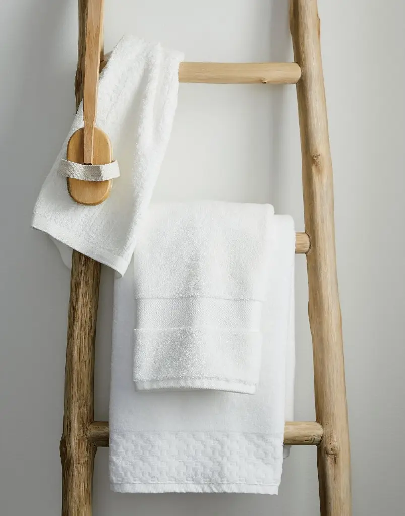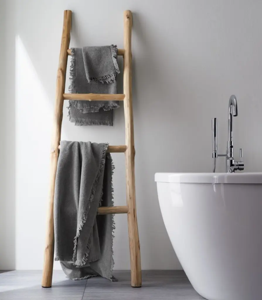 Normally discarded, teak branches get a second chance as a beautiful ladder laden with lots of natural charm. Perfect for draping towels, linens or throws.Check out our storage ideas for your bathroom.