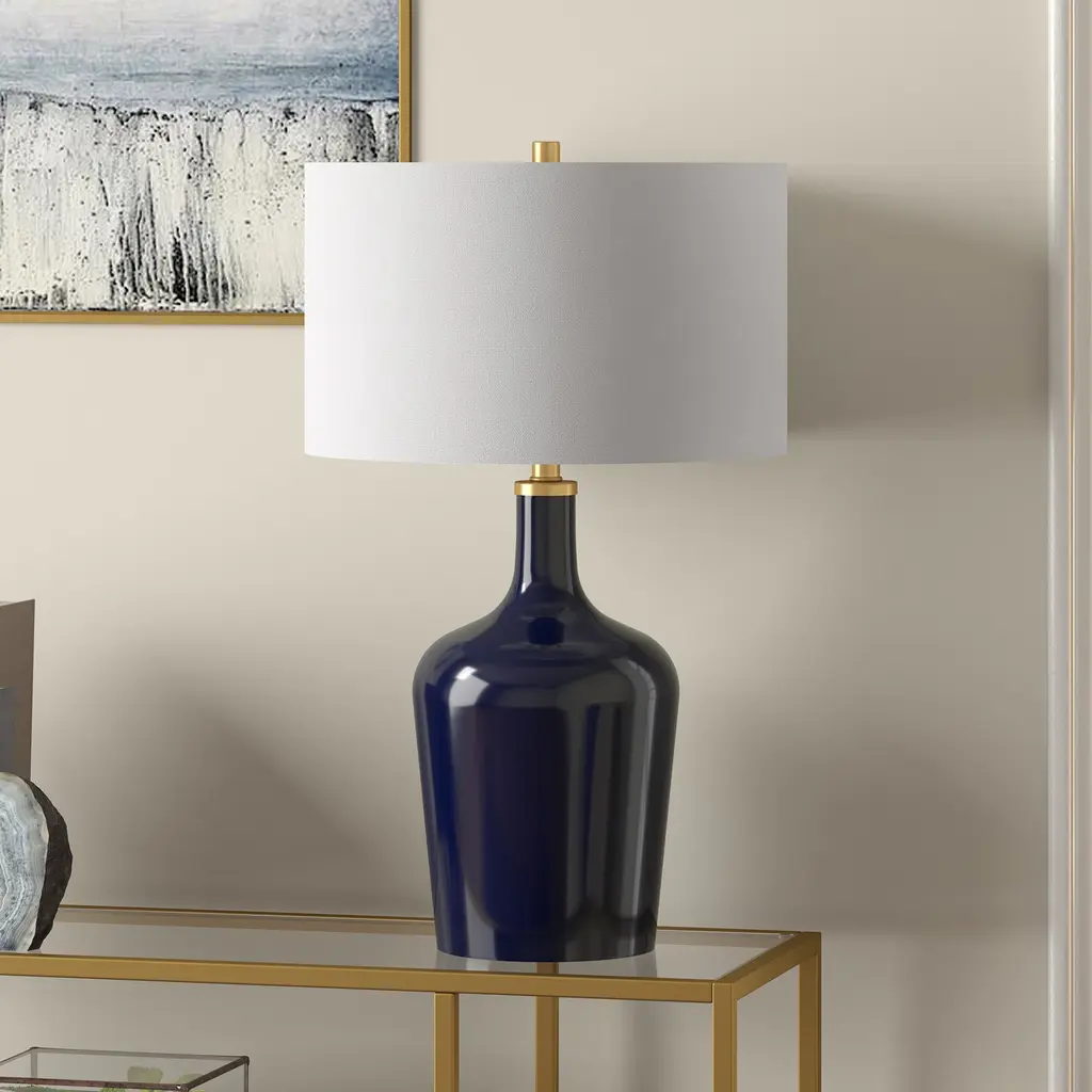 Ideal for adding color to coastal-style dens or offices, this teal set of 2 accent lamps are versatile and stylish. Designed with felt or rubber stoppers at the base that prevent scratching furniture and table tops, as well as sliding around. Requires 1 150W Type A E26/Medium (Standard) bulb. This item ships in 1 carton. Comes with a 61" cord length. Suitable for indoor use only. This item ships fully assembled in one piece. Table lamp comes with a cream drum shaped shade that measures 16 x 16 x 12 inches. Includes a on/off switch. This teal colored ceramic accent lamp comes as a set of 2. Coastal style.