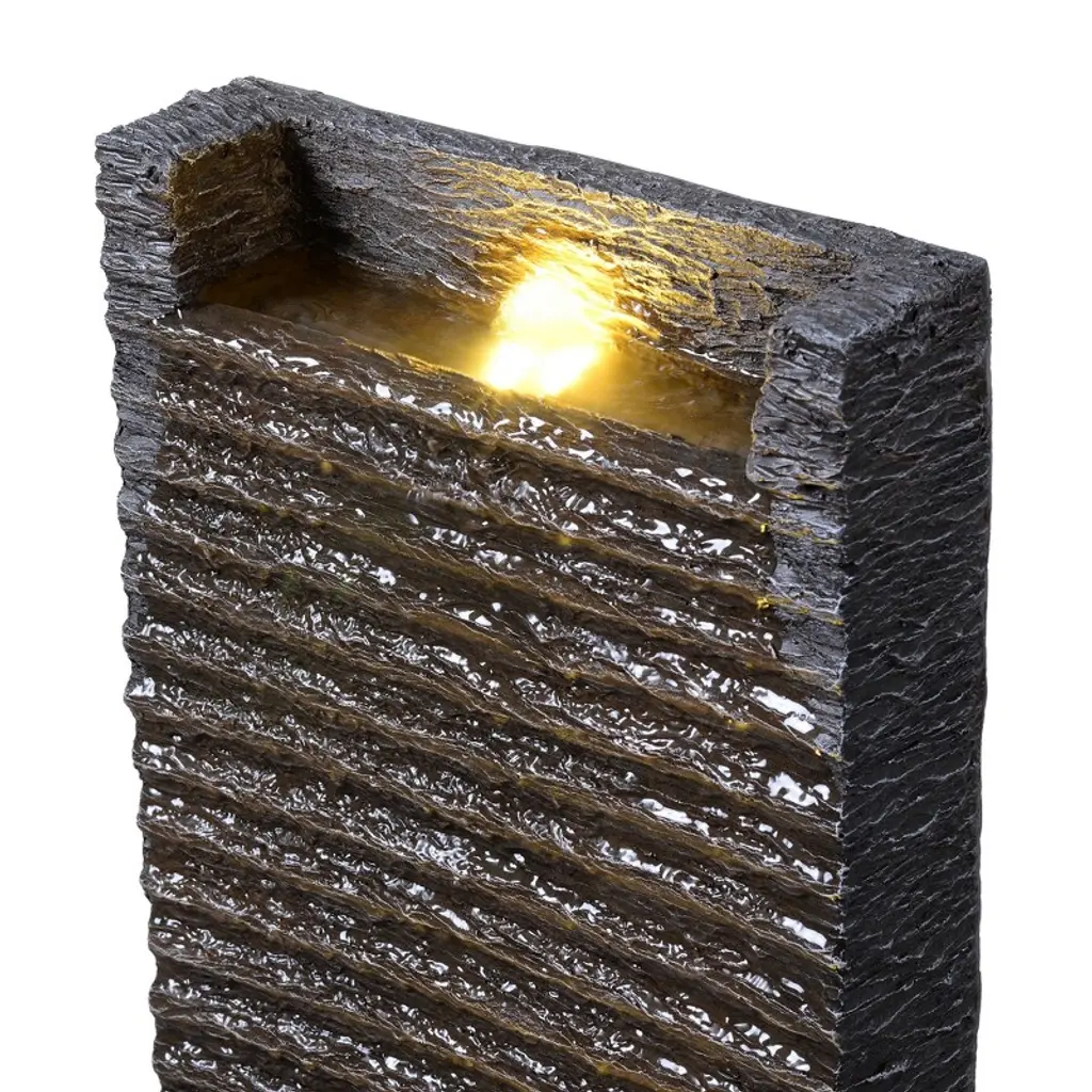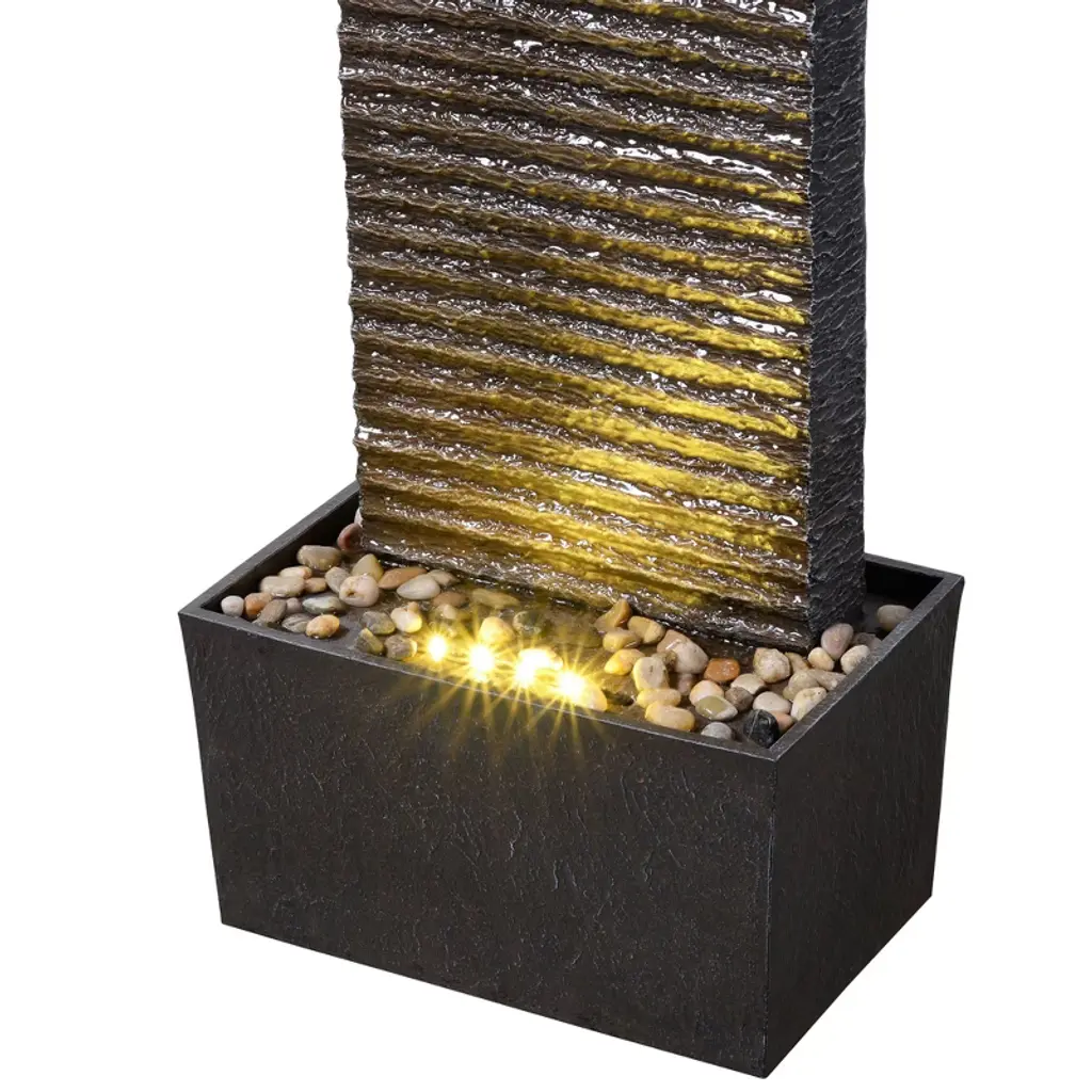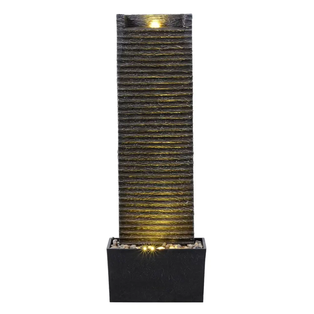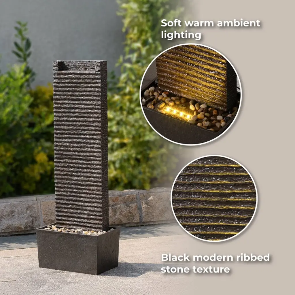 Add visual balance and calming sound to your outdoor space with this symmetrical modern water fountain. Its tall, sculptural form and flowing water create a relaxing focal point for patios, balconies, or garden corners. The dark gray finish and clean lines work beautifully with both minimalist and contemporary styles. Made from durable, weather-resistant polyresin, it's built to last season after season with minimal maintenance. Just plug it in, place it where it fits best, and enjoy the peaceful ambiance it brings to your space.