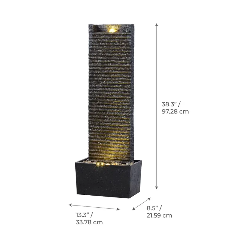 Teamson Home 38" Metal Fiberglass And Polyresin Cascading Ridged Water Fountain Dark Gray