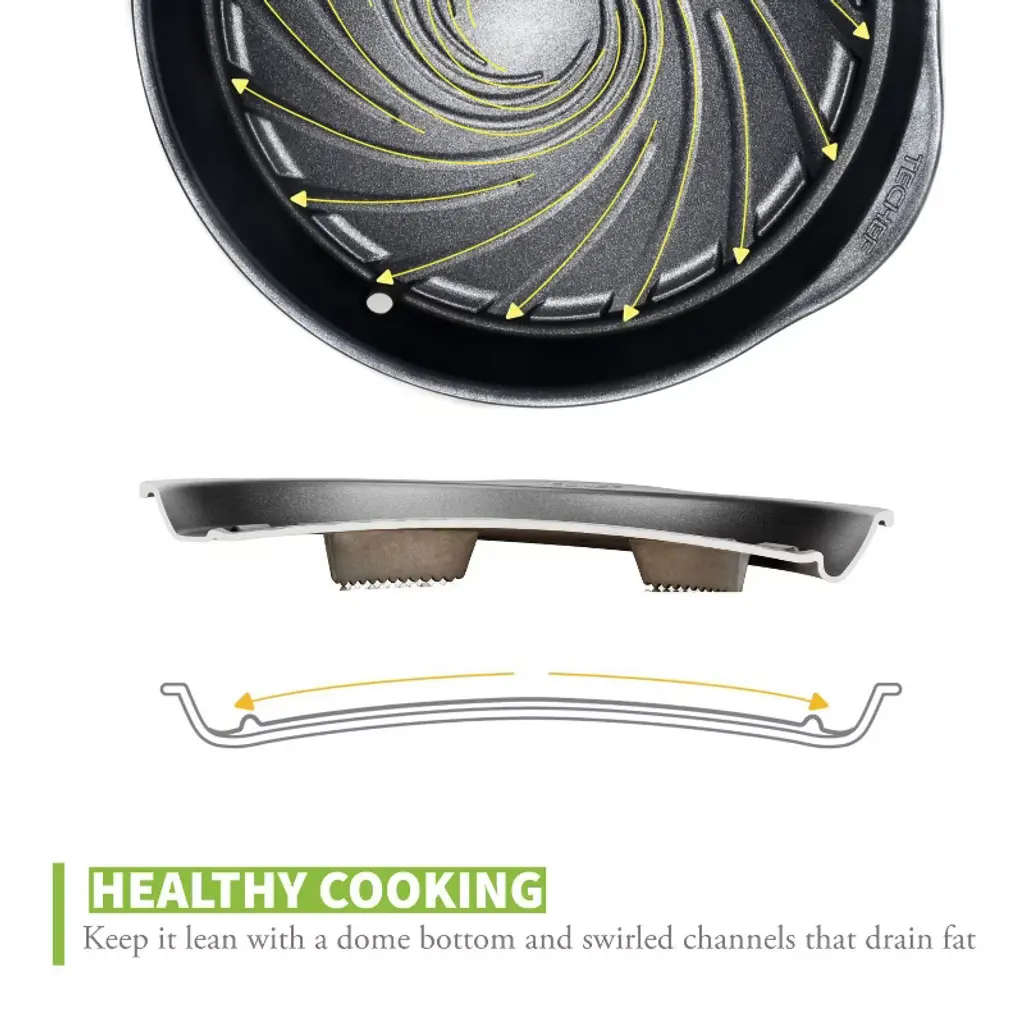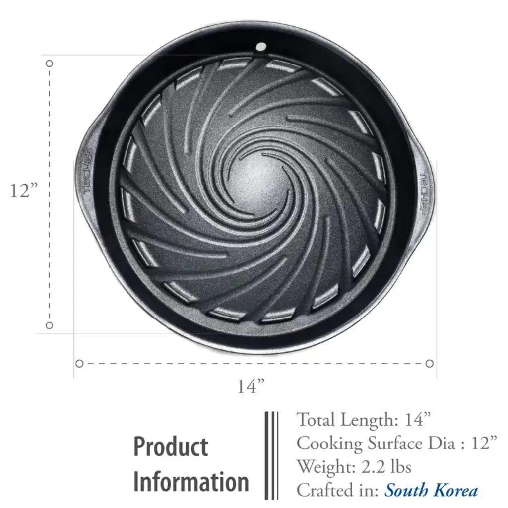Experience authentic K-BBQ with the TECHEF Stovetop K-BBQ Grill Pan, expertly crafted in Korea for both indoor and outdoor cooking. This high-quality grill pan is constructed from durable cast aluminum and features a five-layer nonstick coating for longevity and easy food release. Its unique swirled channel design enhances flavors by allowing oils to drain slowly, while also promoting healthier meals by reducing fat. Perfect for tabletop cooking, this pan is ideal for friend and family dinner parties. It's oven-safe up to 450°F and dishwasher-friendly, making it a versatile and essential addition to your culinary collection.