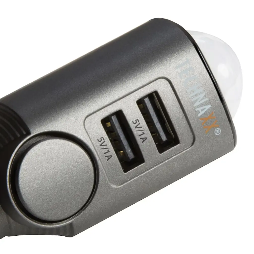 The Technaxx® TX-100 is ideal for use as alarm inside a car, at home, while camping, or in a trailer, boat, or open space! It recharges from a 12-volt to 24-volt cigarette lighter socket or accessory port then you can use it wherever you want. The alarm triggers automatically with motion detection. Use the included remote to activate/deactivate the alarm. The TX-100 also has 2 USB charging ports for your convenience so it can act as a power bank. Get maximum functionality from 1 compact device!